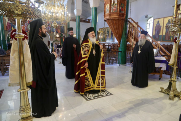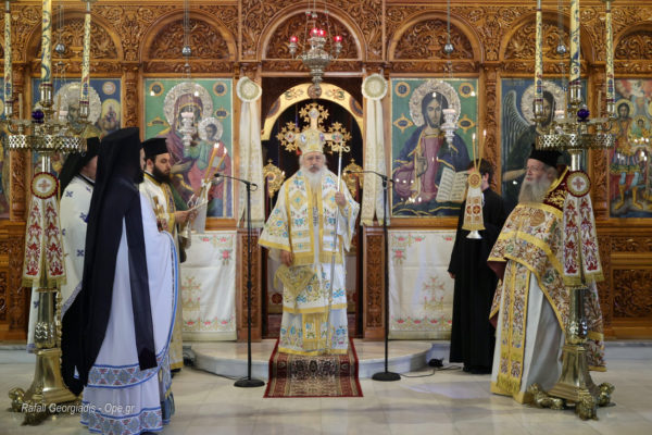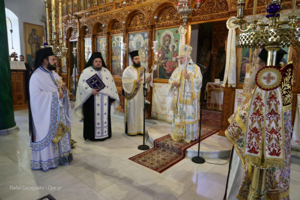 Στη Θεία Λειτουργία χοροστάτησε ο Σεβασμιώτατος Μητροπολίτης Κασσανδρείας κ. Νικόδημος, ενώ τον πλαισίωσαν οι ιερείς του Ι. Μ. Ναού, Αρχιμανδρίτης Συνέσιος Στάθης, Πρωτ. Αντώνιος Φιλίππου και ο ιεροδιάκονος Χαράλαμπος Σκαρλής.