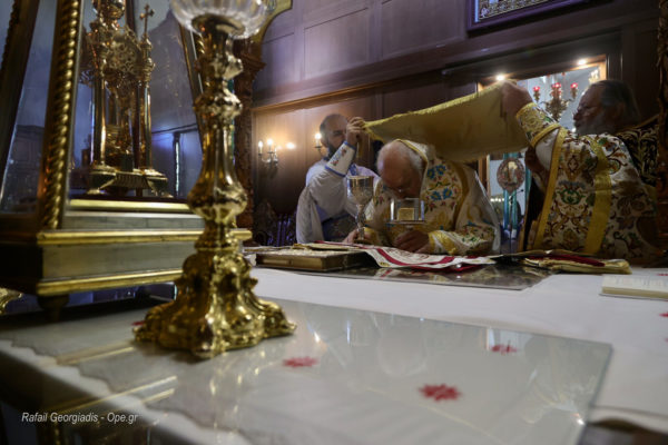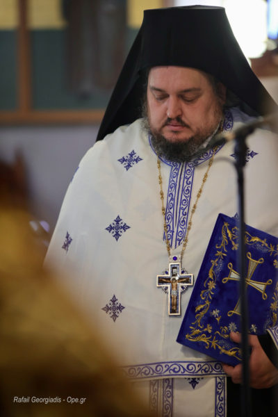 Στη Θεία Λειτουργία χοροστάτησε ο Σεβασμιώτατος Μητροπολίτης Κασσανδρείας κ. Νικόδημος, ενώ τον πλαισίωσαν οι ιερείς του Ι. Μ. Ναού, Αρχιμανδρίτης Συνέσιος Στάθης, Πρωτ. Αντώνιος Φιλίππου και ο ιεροδιάκονος Χαράλαμπος Σκαρλής.
