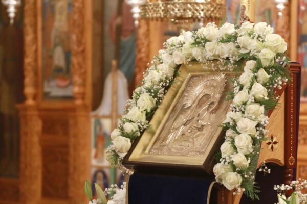 Από νωρίς πιστοί προσέρχονταν στο ναό για να προσκυνήσουν την σεβάσμια Εικόνα της Παναγίας του «Ποταμού» ιερό κειμήλιο που αποθησαυρίζεται στον Ιερό Ναό από της εποχής του Μακαριστού Μητροπολίτου Κασσανδρείας κυρού Ειρηναίου. Στο κήρυγμα του ο Σεβασμιώτατος ανέλυσε την τελευταία στροφή των χαιρετισμών «Ω πανύμνητε μήτερ» και αναφέρθηκε στην μητρική στοργή της Παναγίας προς κάθε χριστιανό που επικαλείται τη βοήθεια και τις μεσιτείες της.
