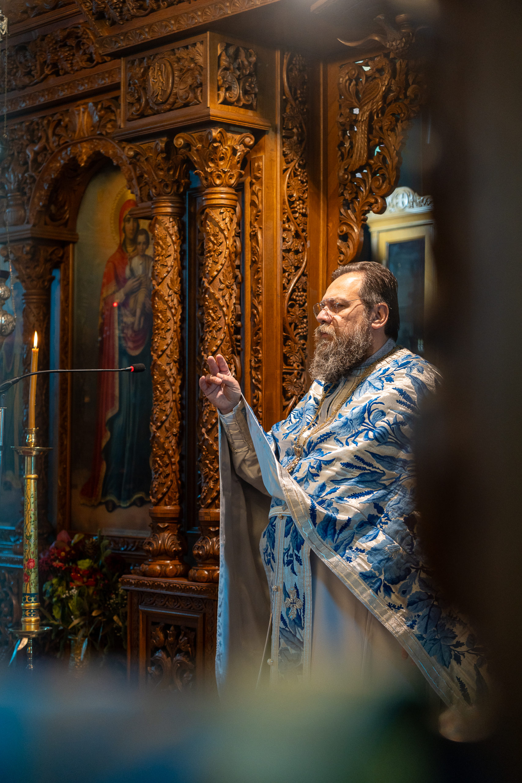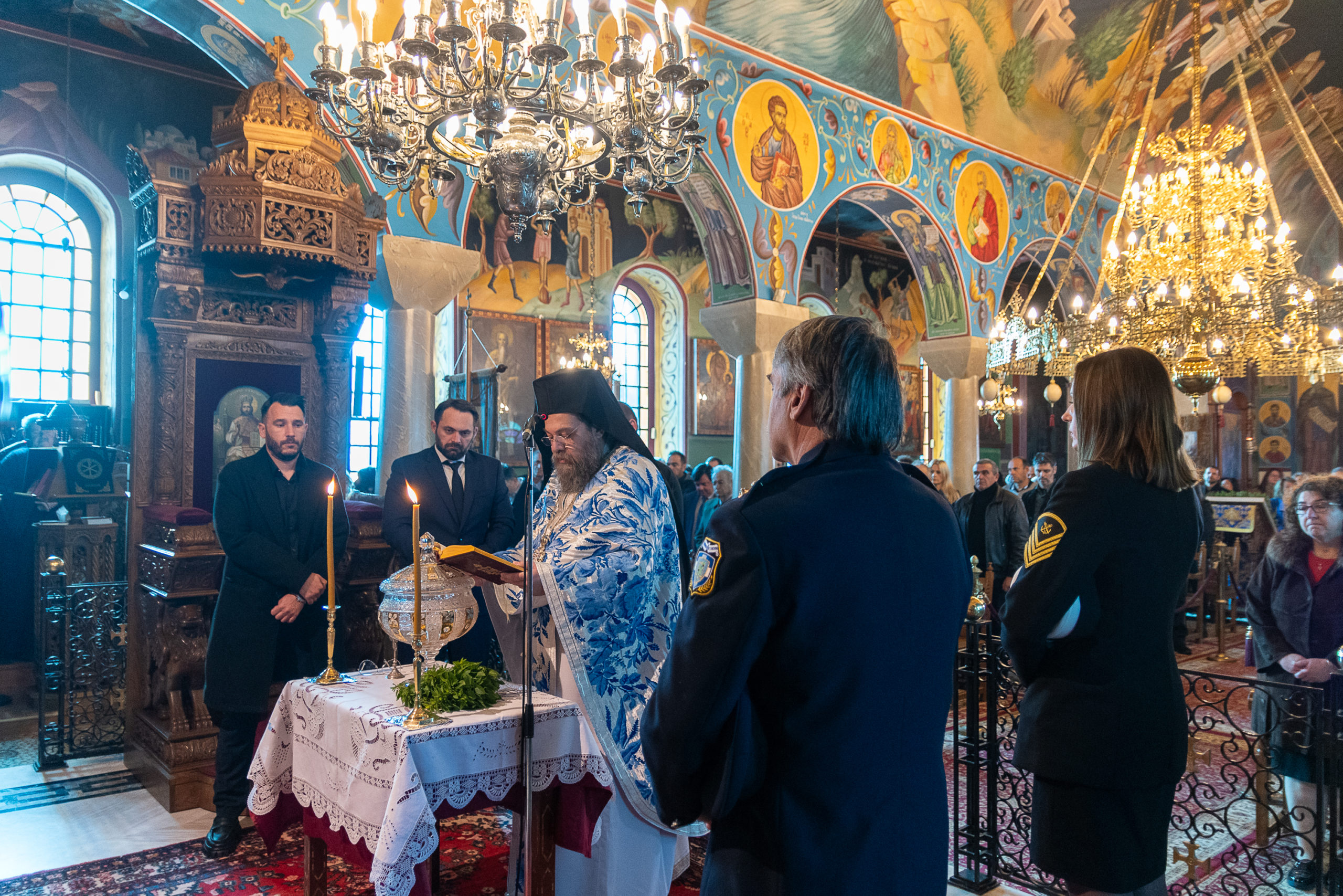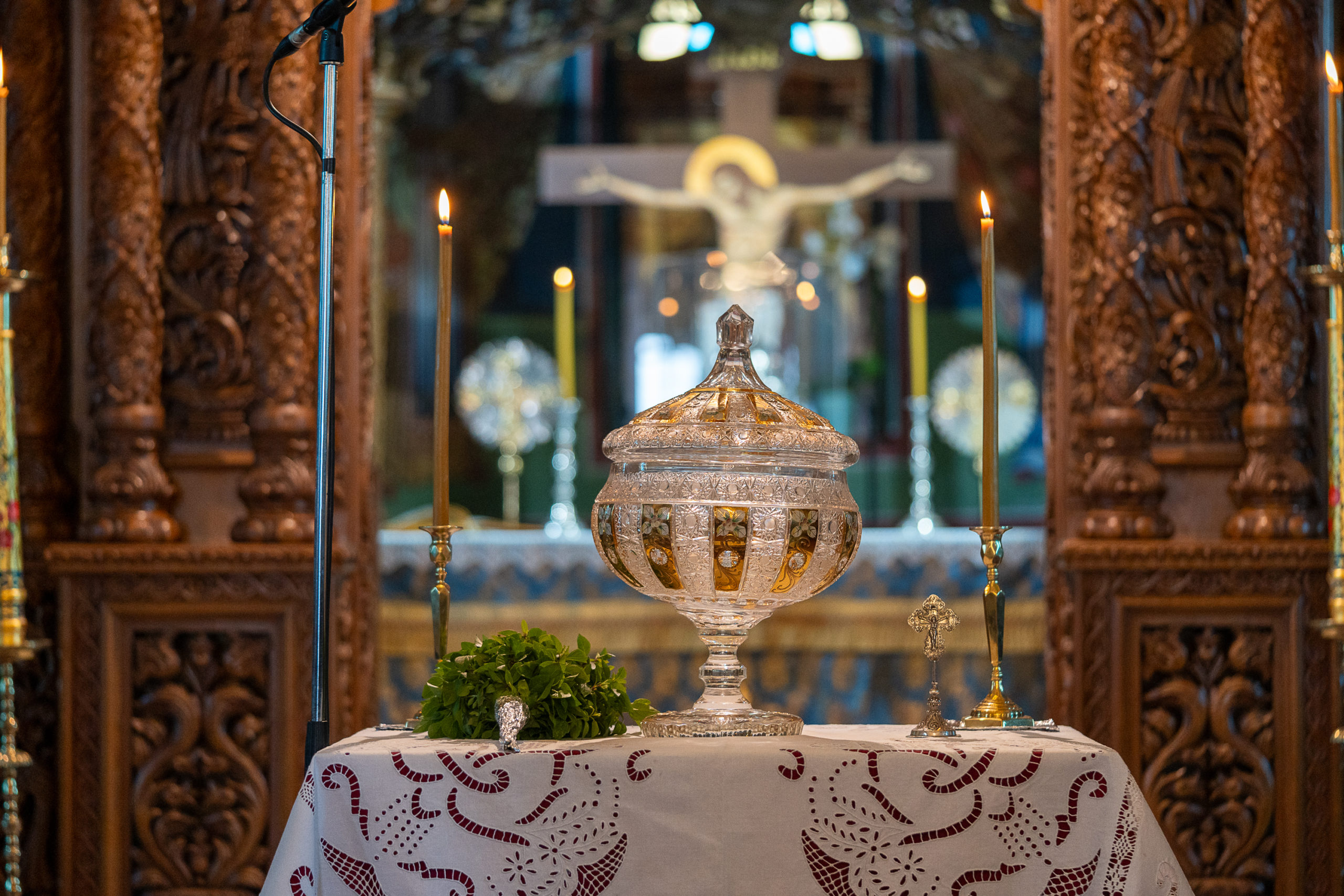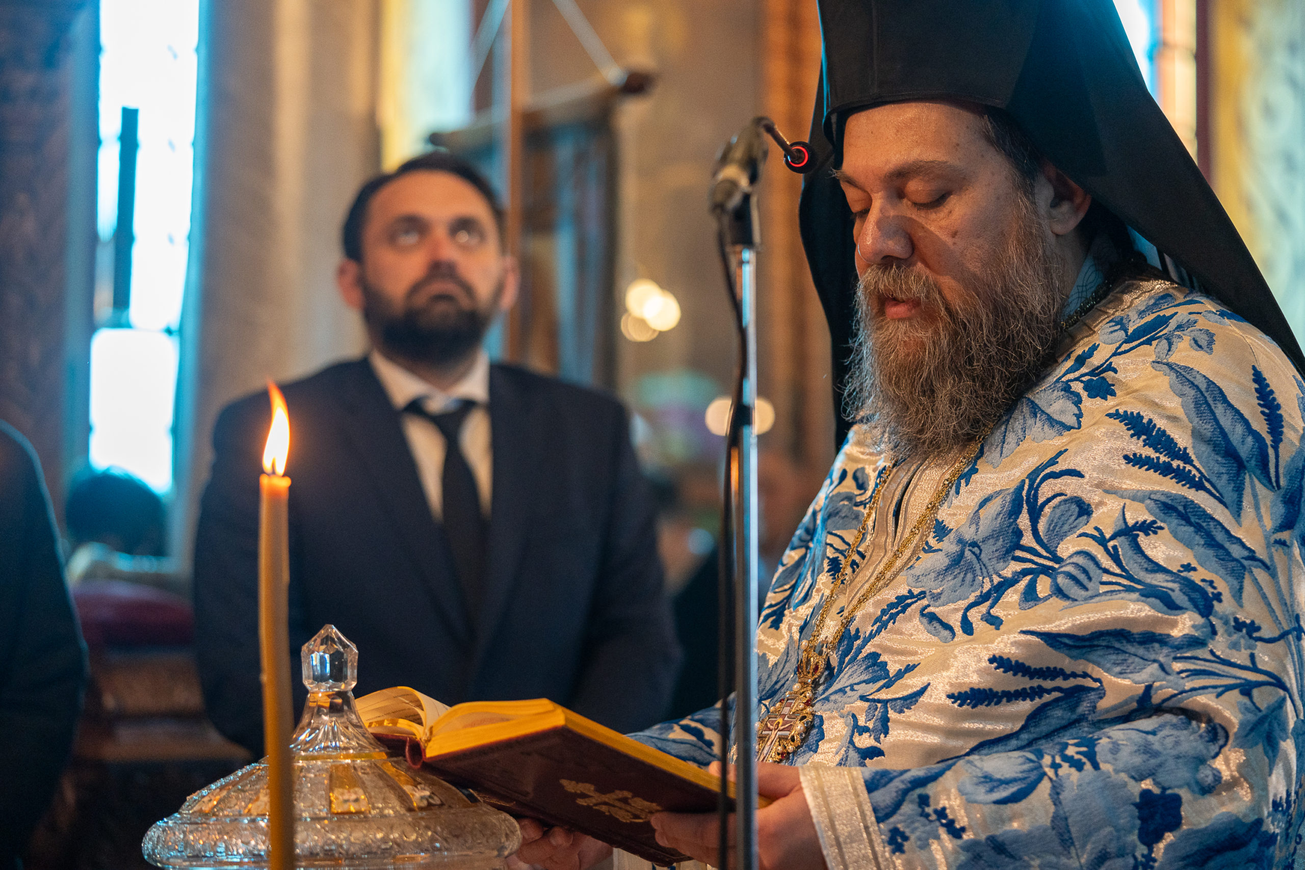 Το μυστήριο της Θείας Ευχαριστίας και την ακολουθία του Μεγάλου Αγιασμού τέλεσε ο προϊστάμενος του Ιερού Ναού των Παμμεγίστων Ταξιαρχών αρχιμ. Ιάκωβος Βασιλείου.