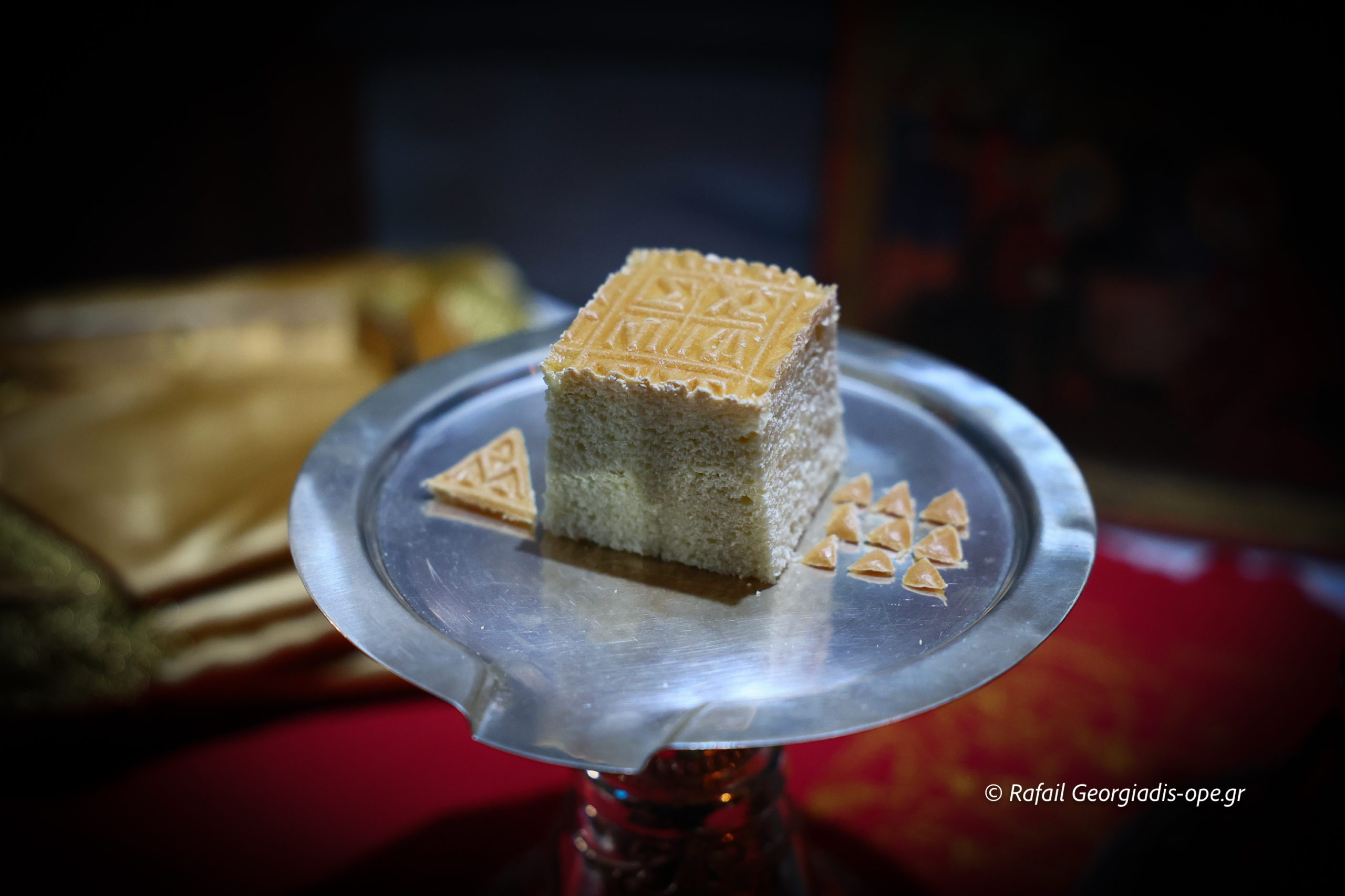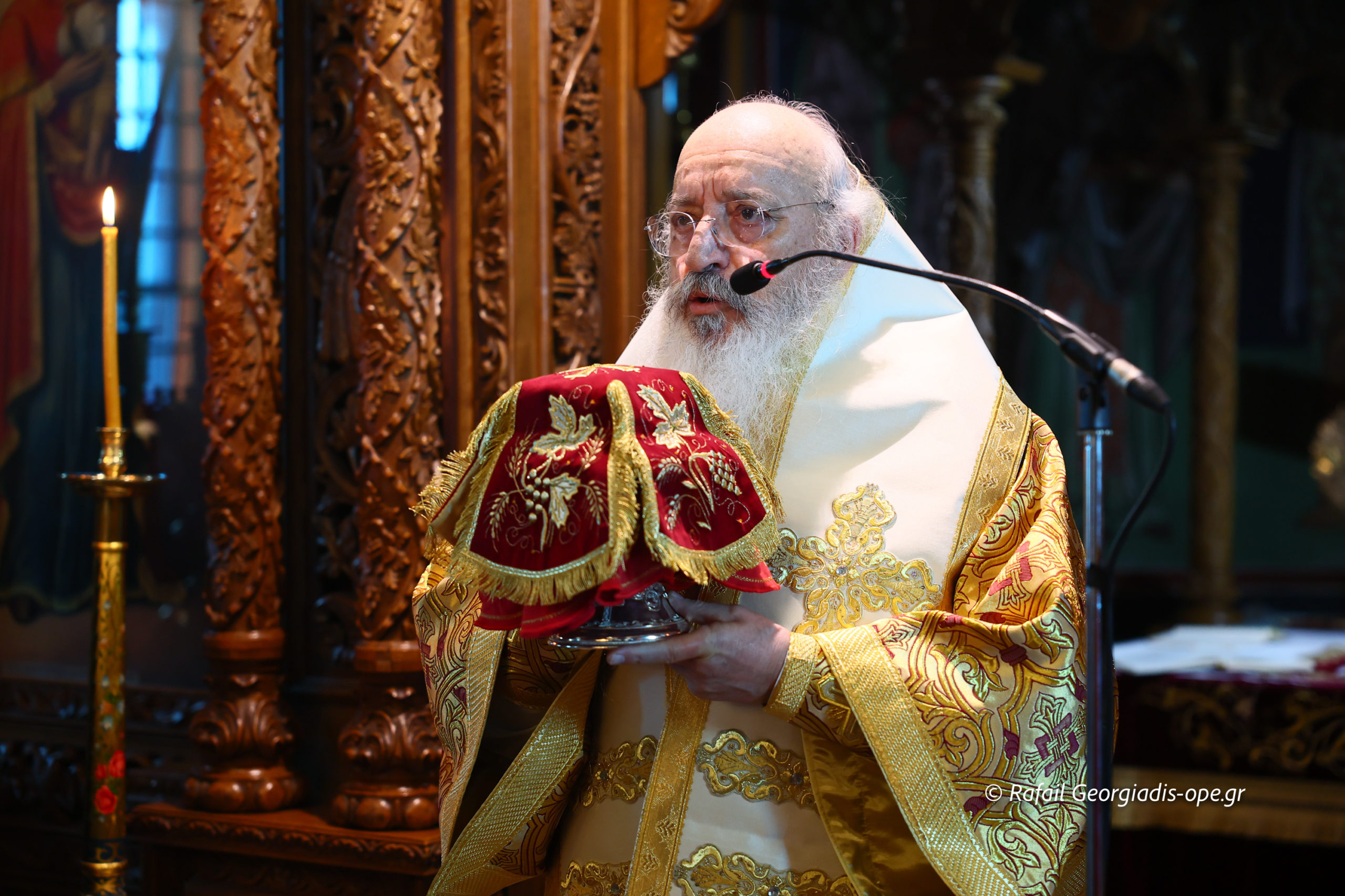 Σήμερα θα ήθελα, ενώπιον όλων σας, να του προσφέρω ένα επιγονάτιο, το οποίο συμβολίζει το λέντιον του Χριστού. Όπως ο Κύριός μας, κατά το βράδυ του Ιερού Νιπτήρος, έζωσε τον εαυτό Του με το λέντιον και έσκυψε με ταπείνωση να νίψει τα πόδια των μαθητών Του, έτσι και ο πατήρ Ιάκωβος, ζωσμένος με το λέντιον της διακονίας, διακονεί με αγάπη και αυταπάρνηση την ενορία του και κάθε πιστό χριστιανό.