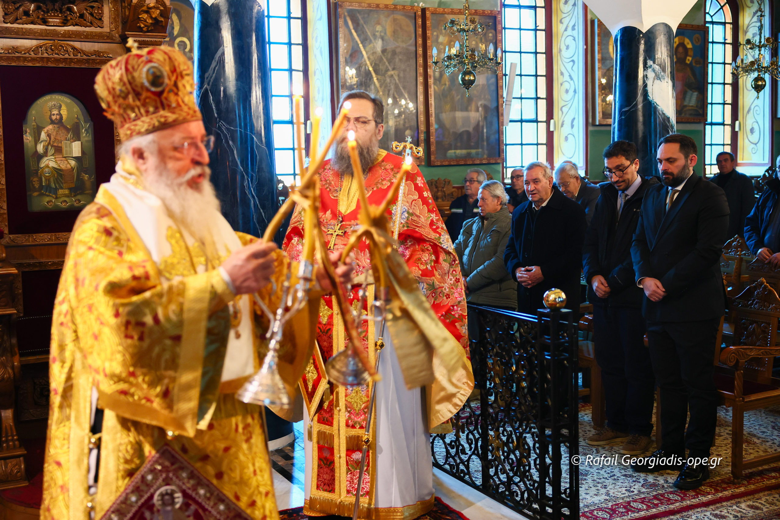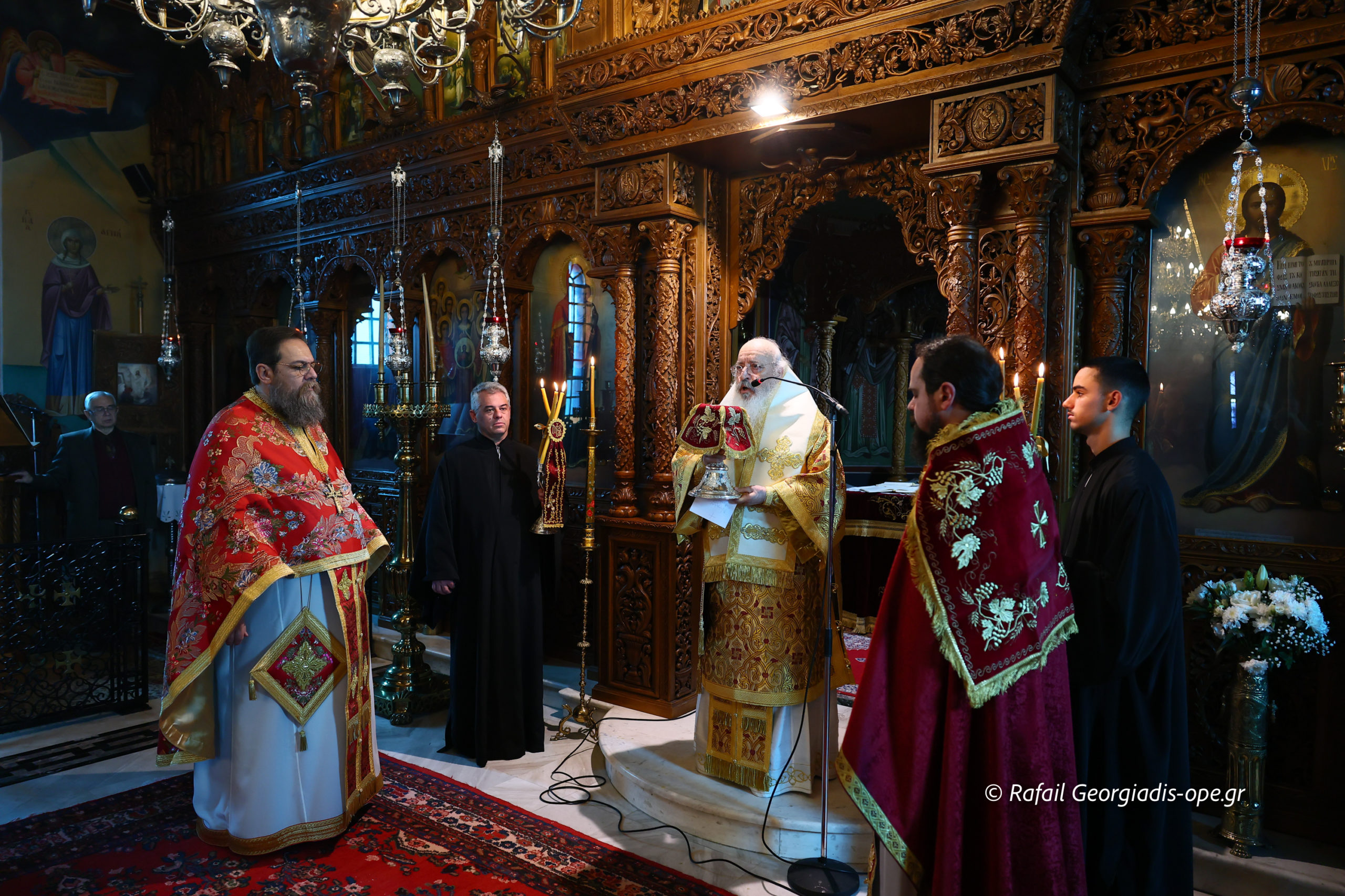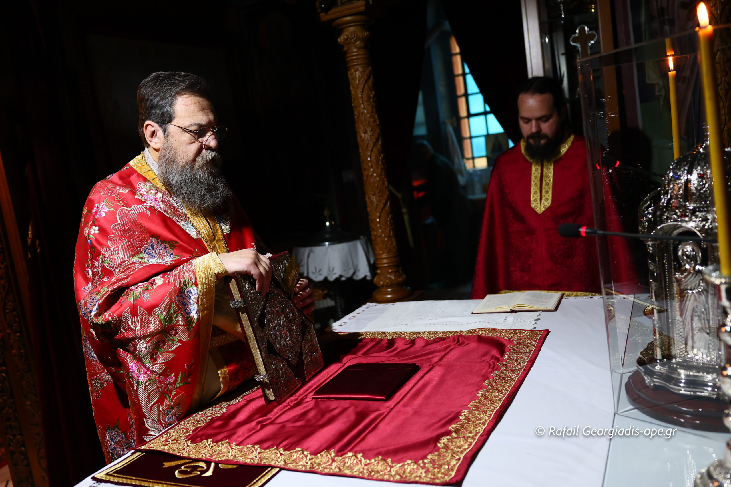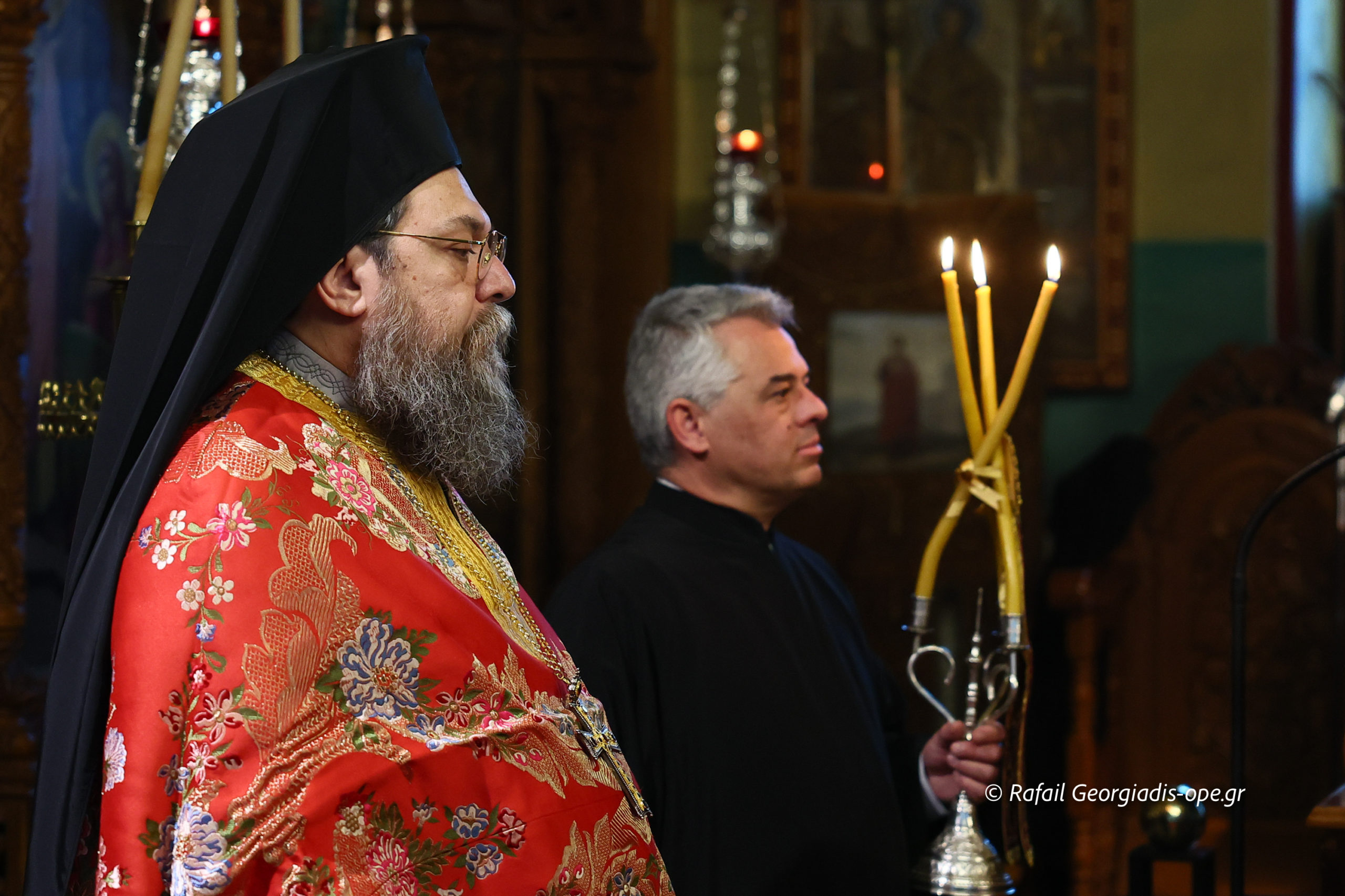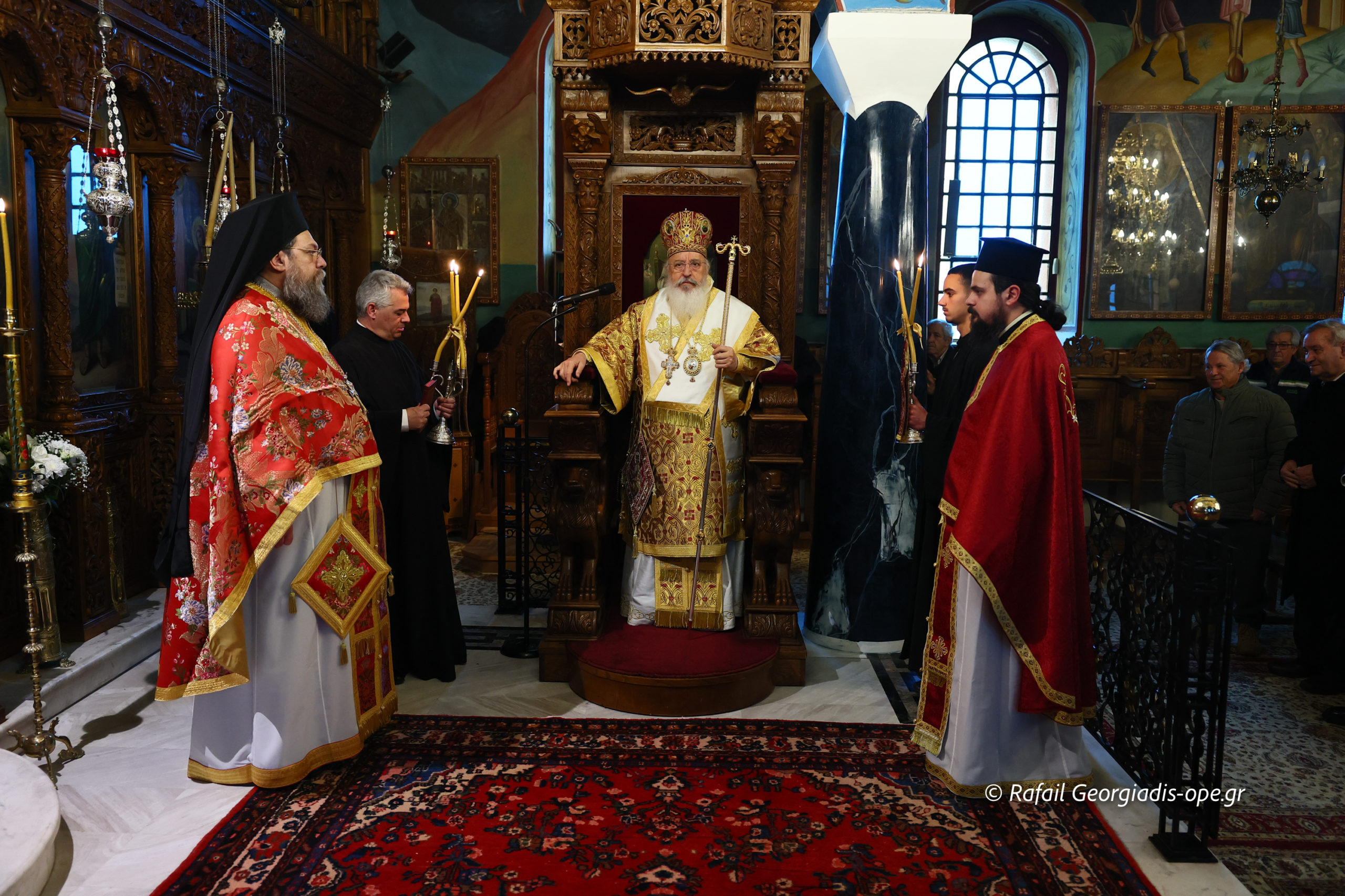Τον Σεβασμιώτατο πλαισίωσε ο προϊστάμενος του ναού, Αρχιμανδρίτης Ιάκωβος Βασιλείου και ο πρεσβύτερος Λεωνίδας Τσιόκας. Στο τέλος της Θείας Λειτουργίας σε κλίμα συγκίνησης και προσευχής, με τη συμμετοχή των ενοριτών, τελέστηκε το οικογενειακό μνημόσυνο των γονέων και των τριών κατά σάρκα αδελφών του π. Ιακώβου.