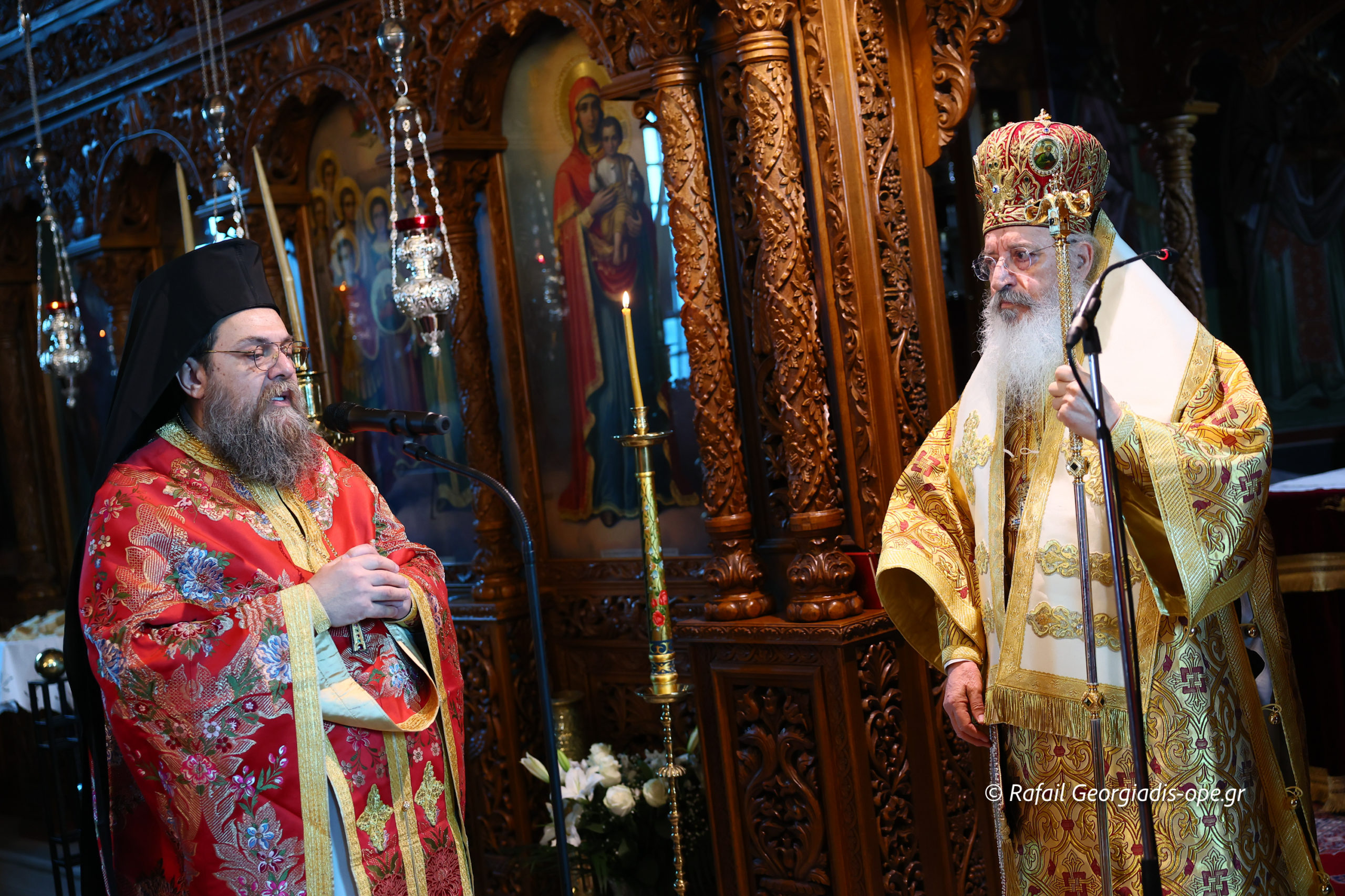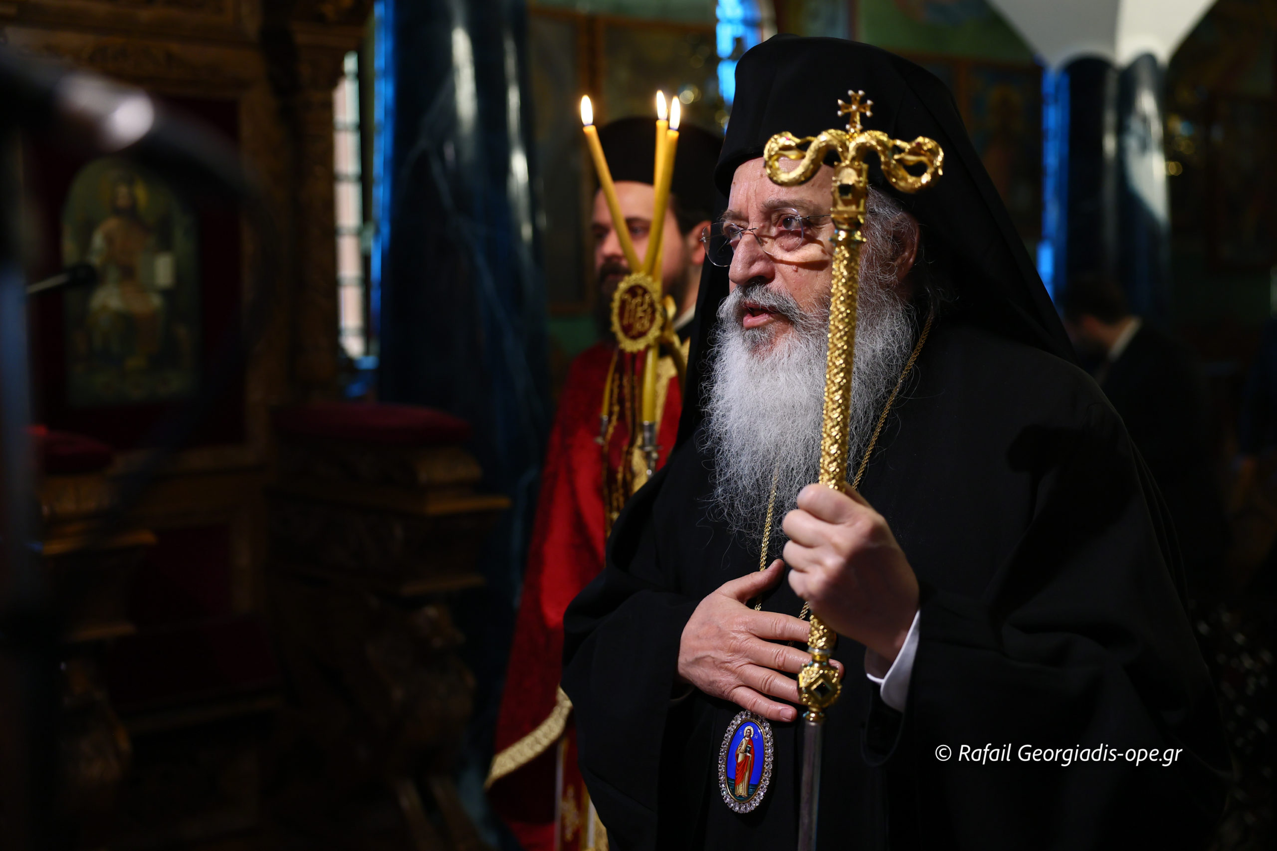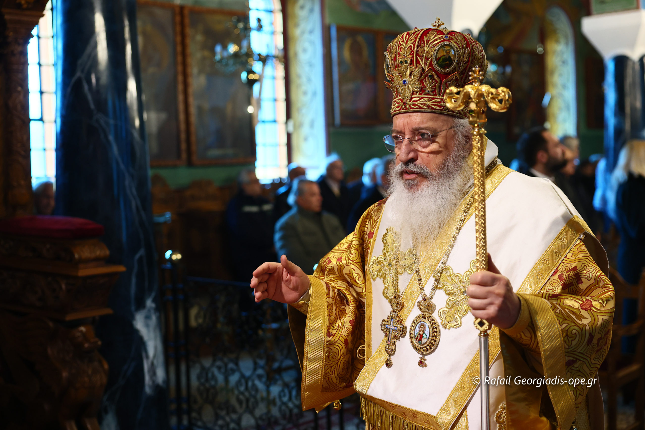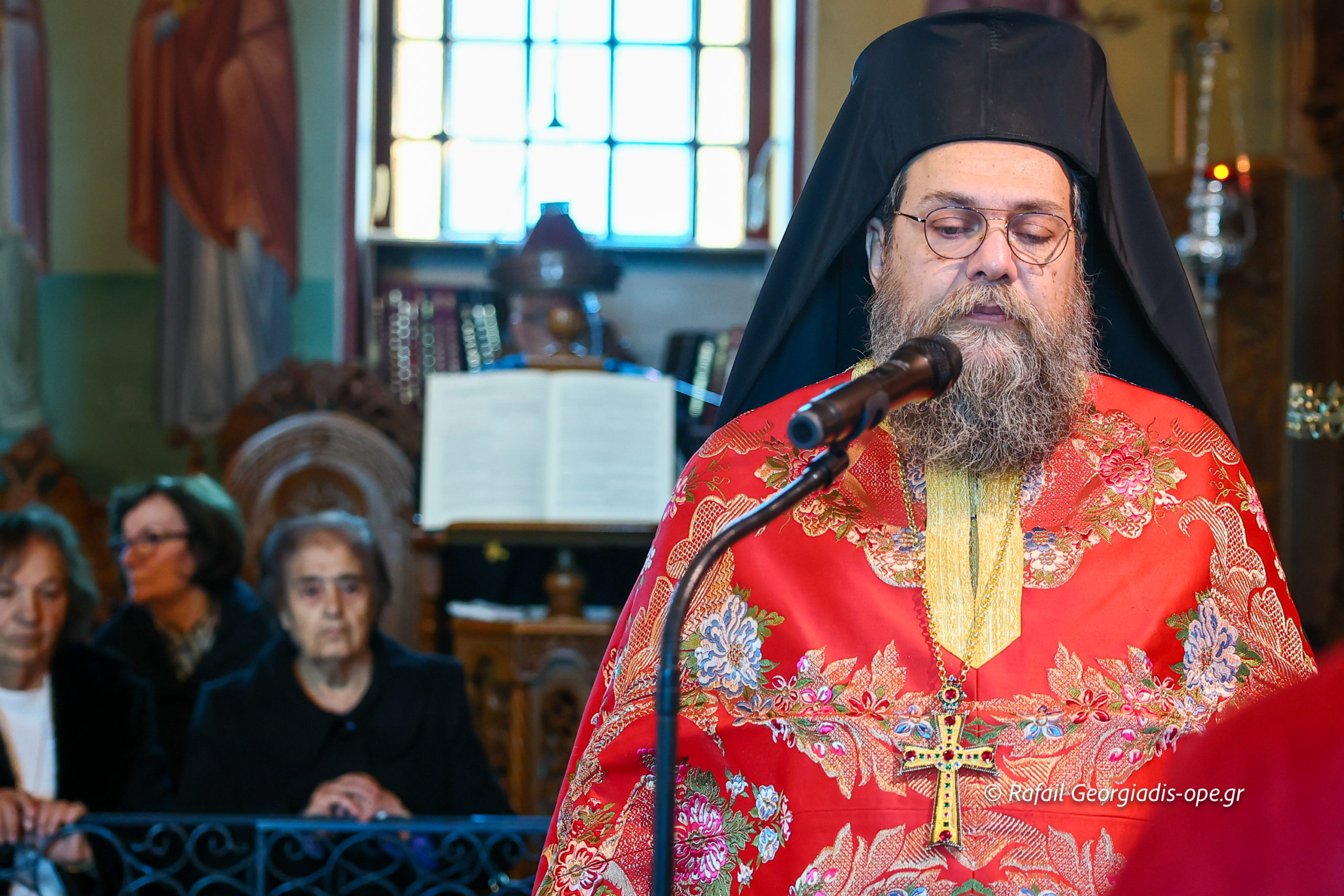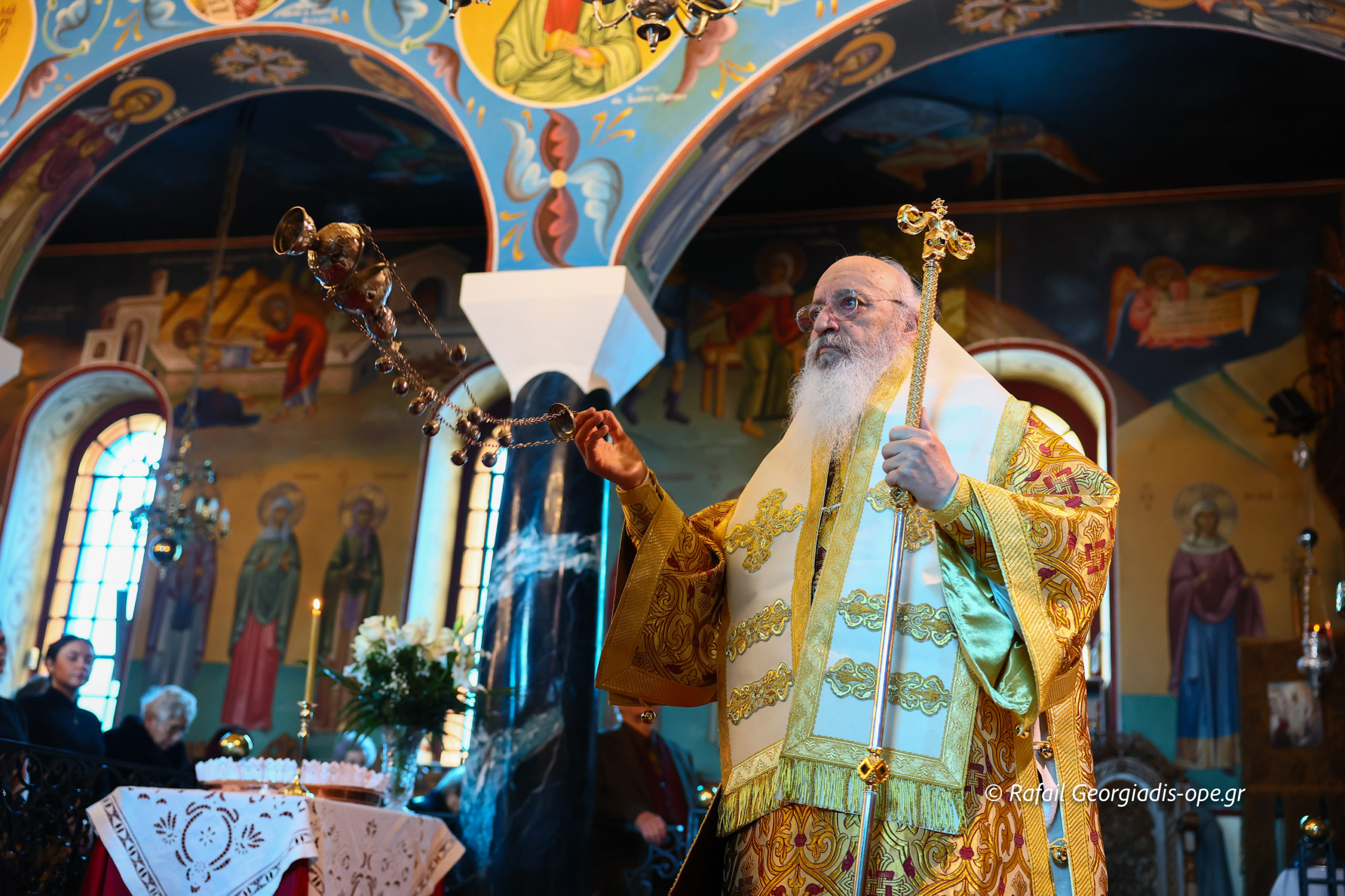 Τον Σεβασμιώτατο πλαισίωσε ο προϊστάμενος του ναού, Αρχιμανδρίτης Ιάκωβος Βασιλείου και ο πρεσβύτερος Λεωνίδας Τσιόκας. Στο τέλος της Θείας Λειτουργίας σε κλίμα συγκίνησης και προσευχής, με τη συμμετοχή των ενοριτών, τελέστηκε το οικογενειακό μνημόσυνο των γονέων και των τριών κατά σάρκα αδελφών του π. Ιακώβου.