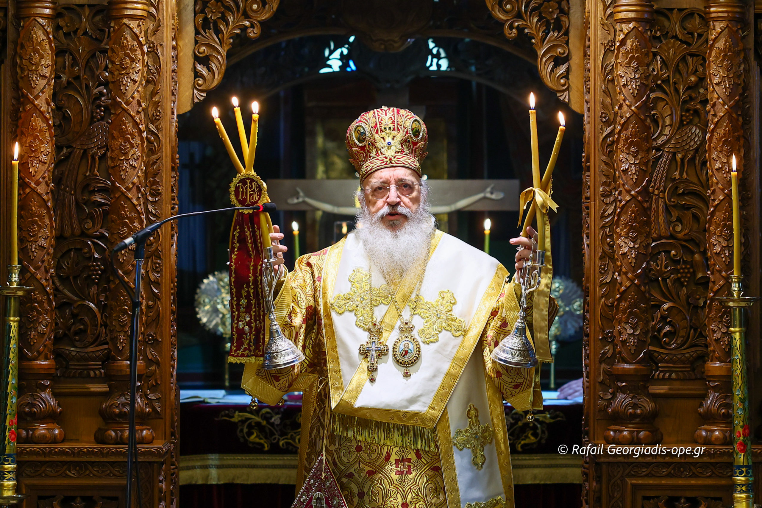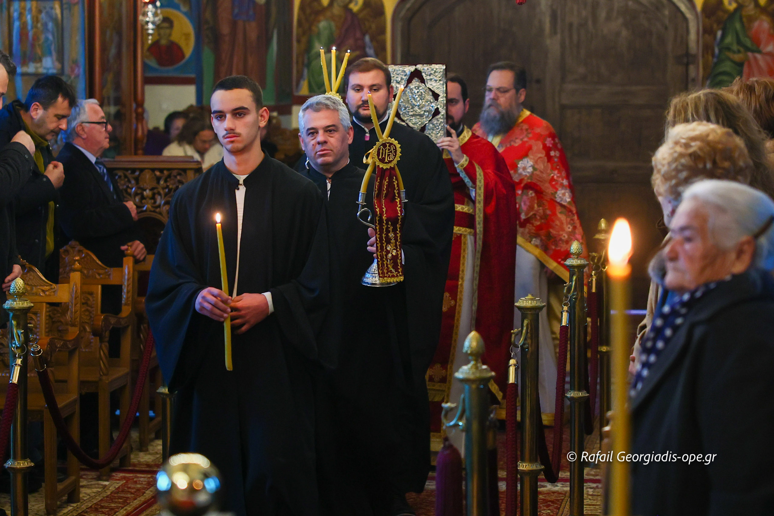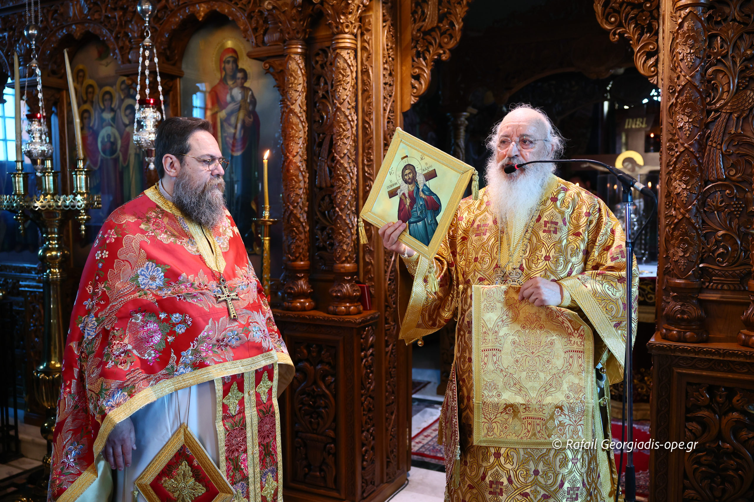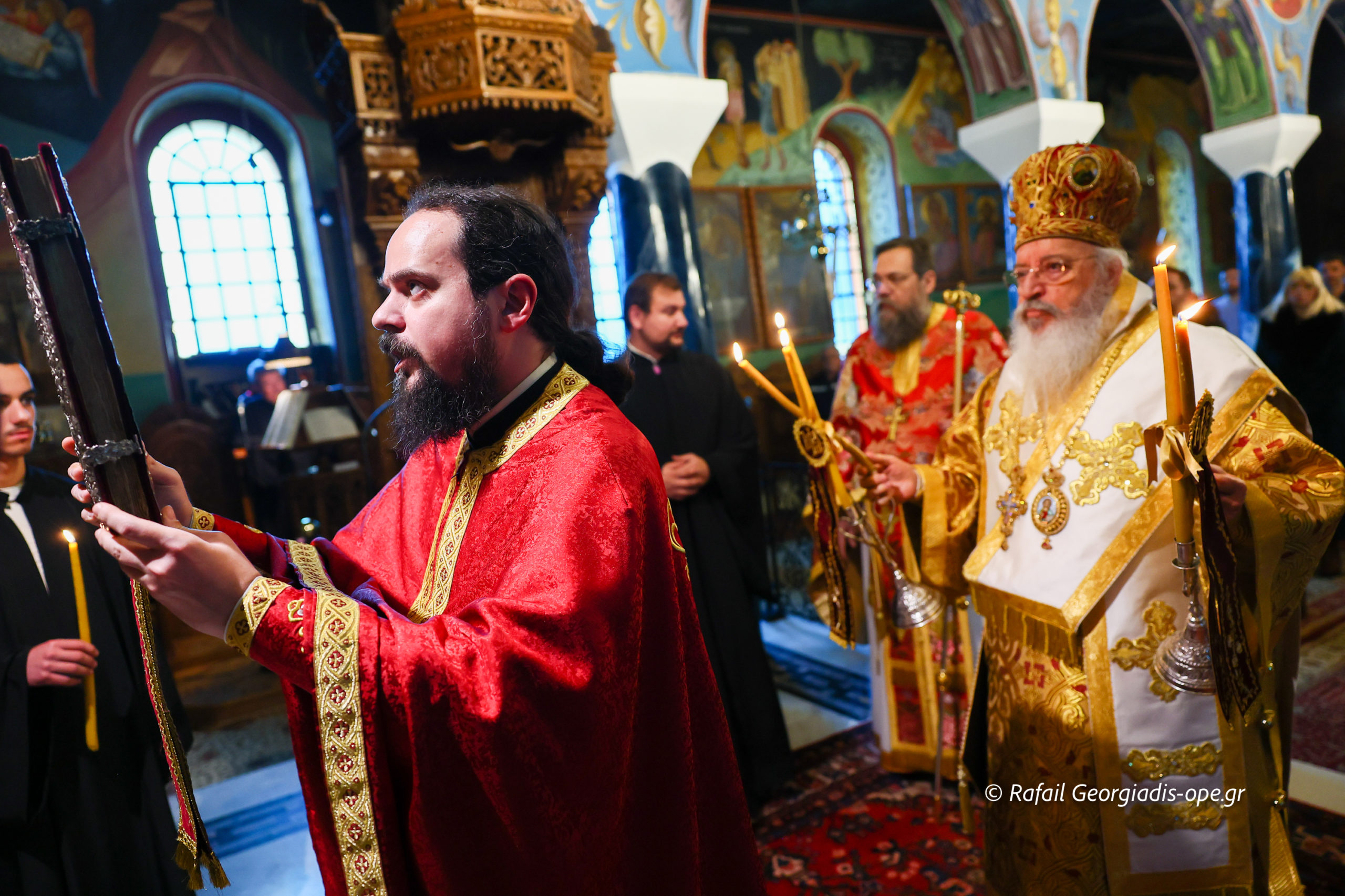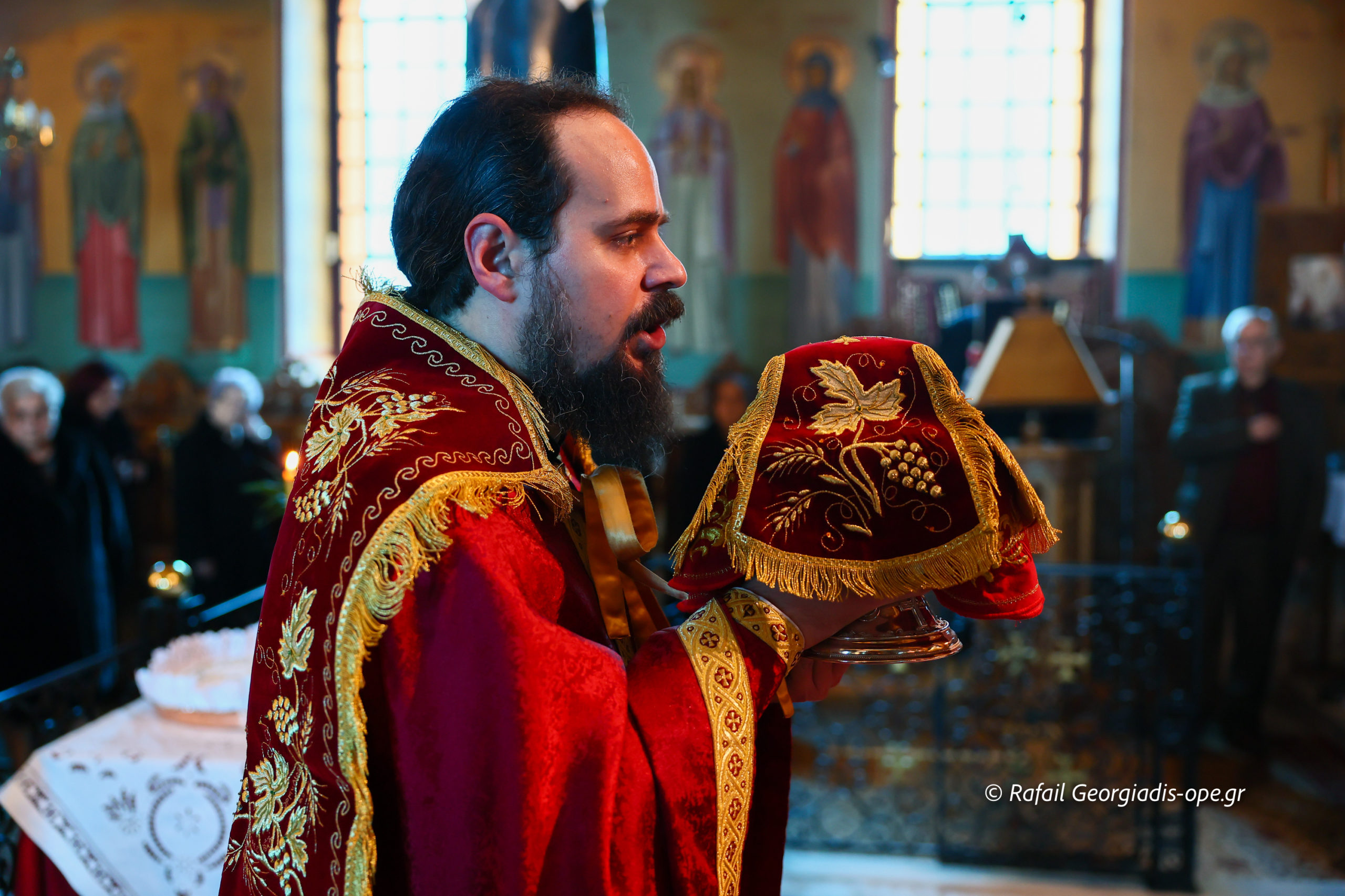 Τον Σεβασμιώτατο πλαισίωσε ο προϊστάμενος του ναού, Αρχιμανδρίτης Ιάκωβος Βασιλείου και ο πρεσβύτερος Λεωνίδας Τσιόκας. Στο τέλος της Θείας Λειτουργίας σε κλίμα συγκίνησης και προσευχής, με τη συμμετοχή των ενοριτών, τελέστηκε το οικογενειακό μνημόσυνο των γονέων και των τριών κατά σάρκα αδελφών του π. Ιακώβου.