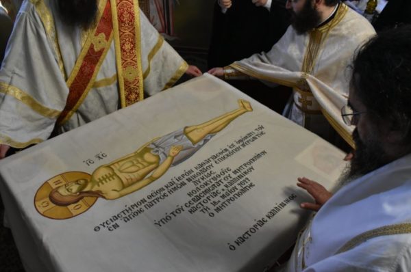 Τέλος ο Εφημέριος της Ενορίας, αφού ευχαρίστησε τον Σεβασμιώτατο, του δώρισε ένα πετραχήλι και αρχιερατικό ωμοφόριο εκ μέρους όλης της Ενορίας.