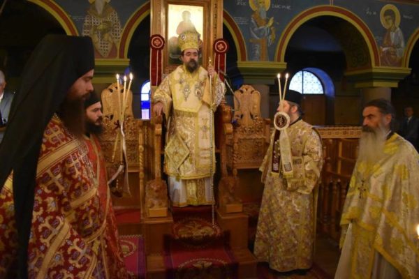 Στο τέλος της θείας Λειτουργίας ο Σεβασμιώτατος ευχήθηκε τα δέοντα στον εορτάζοντα Εφημέριο π. Δημήτριο Συκόπουλο και σε όλο το εκκλησίασμα.