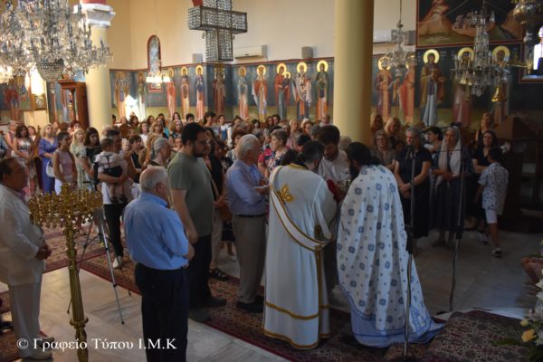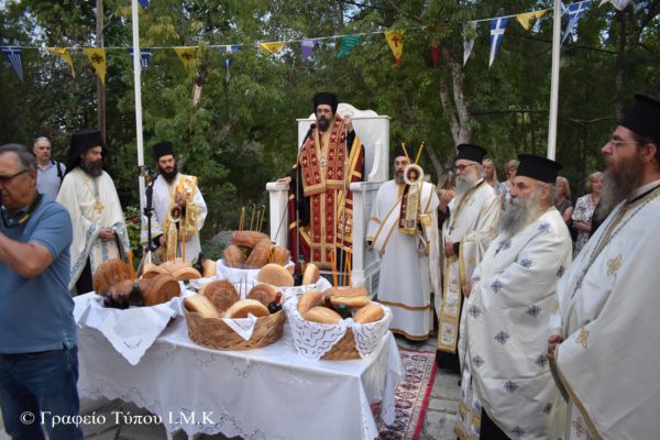 Κατά την Λιτή του Εσπερινού εξήλθε λιτανευτικά η ιερά εικόνα του Προφήτου Ηλία στο προαύλιο του Παρεκκλησίου, όπου τελέσθηκε η Αρτοκλασία και το θείο Κήρυγμα του Σεβασμιωτάτου.