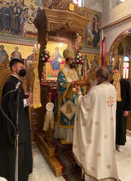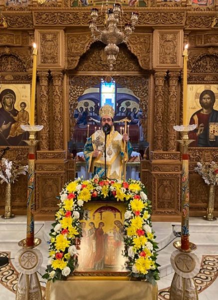 Ο Σεβασμιώτατος στο κήρυγμα του αναφέρθηκε στα νοήματα της φωτεινής εορτής της Υπαπαντής του Χριστού, τονίζοντας την φράση του δικαίου Συμεών «Νυν απολύεις τον δούλον σου Δέσποτα εν ειρήνη». Όπως υπογράμμισε, η φράση αυτή είναι η κατ’ εξοχήν αντιμετώπιση του θανάτου που οφείλεται όχι σε κάποια ανθρώπινη γενναιότητα ή ιδεολογία, αλλά στην ενανθρώπηση του Υιού και Λόγου του Θεού, τον Οποίον ο Συμεών κρατούσε στα χέρια του.