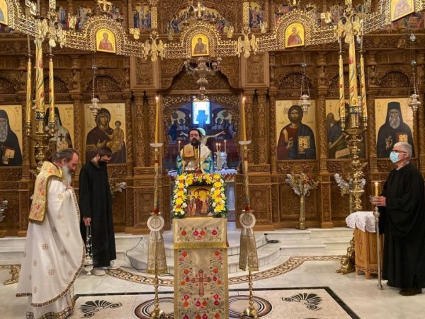 Το πρωί της εορτής στον ως άνω αναφερόμενο Μεγαλοπρεπή Ιερό Ναό τελέσθηκε ο Όρθρος και η Αρχιερατική Θεία Λειτουργία ιερουργούντος του Σεβασμιωτάτου Μητροπολίτη Καστορίας κ.Καλλινίκου. Τον Σεβασμιώτατο λειτουργό πλαισίωσε ο εφημέριος του Ιερού Ναού π.Πασχάλης Μουτζίκης, ενώ τα ιερά αναλόγια κόσμησαν οι ιεροψάλτες του Ιερού Ναού.