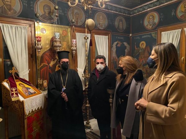 Ο Σεβασμιώτατος ευχαρίστησε την κ. Υφυπουργό, της προσέφερε μια εικόνα του οσίου Νικάνορος και την ξενάγησε στο Επισκοπείο.