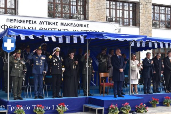 Γι᾽ αὐτό καί εὐχαριστοῦμε τόν Ὑπουργό Ἐθνικῆς Ἀμύνης καί τούς Γενναίους Ἀρχηγούς τῶν Ὅπλων τῆς Πατρίδος μας, πού ἦρθαν σήμερα στήν Καστοριά, γιά νά ἑορτάσουν μαζί μέ τόν λαό της τά Ἐλευθέριά της.