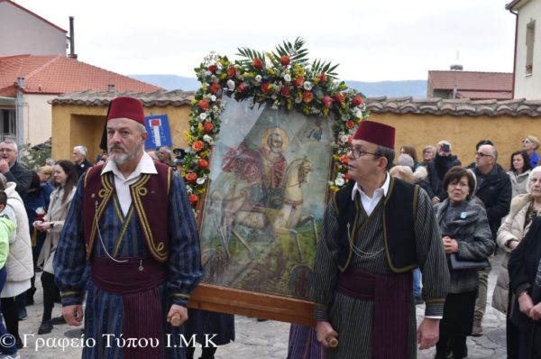 Εν συνέχεια τα παιδιά από το σύστημα προσκόπων Καστοριάς και η Φιλαρμονική του στρατού, συνόδευαν την Ιερά Εικόνα του Στρατηλάτου Αγίου Μηνά, την οποία είχε πλαισιώσει άγημα του Στρατού.