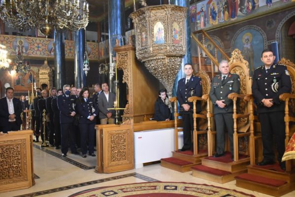 Πριν την απόλυση της Θείας Λειτουργίας αφού ευλογήθηκαν τα εορταστικά κόλλυβα προς τιμήν του Αγίου Μεγαλομάρτυρα Αρτεμίου, τελέσθηκε η ακολουθία της αρτοκλασίας και η επίσημη Δοξολογία υπέρ υγείας πάντων των χριστιανών που υπηρετούν στα σώματα ασφαλείας της πατρίδος μας. Ακολούθως την εγκύκλιο του Αρχηγού της Ελληνικής Αστυνομίας ανέγνωσε ο αστυνομικός κ.Πέτρος Τσέλιος.