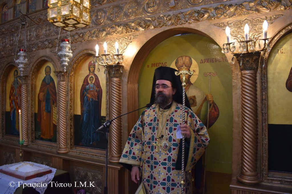 Κατά την Αρχιερατική Θεία Λειτουργία τον Σεβασμιώτατο πλαισίωσαν ο εορτάζων εφημέριος του χωριού π.Διονύσιος Παπαιωαννίδης και οι δυό διάκονοι της Ιεράς Μητροπόλεως.
