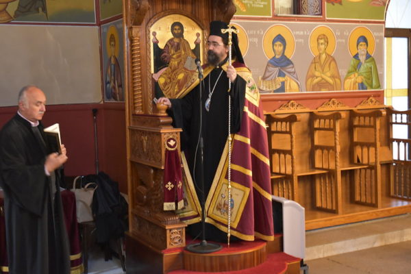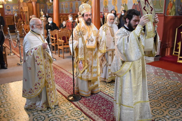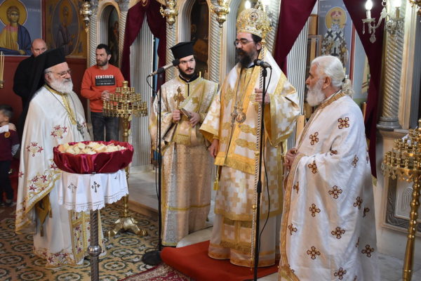 Στο τέλος της Θ.Λ αφού ευχαρίστησε κλήρο και λαό για την συμμετοχή τους στο μέγα αυτό Μυστήριο, συνεχάρη τον εφημέριο του Ιερού Ναού για την πολύτιμη προσφορά του στην Μητρόπολη αλλά και στο χωριό που υπηρετεί, δίνοντάς του ως δώρο έναν επιστήθιο Σταυρό.
