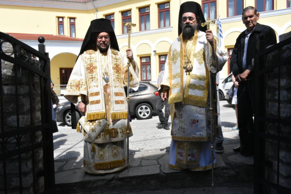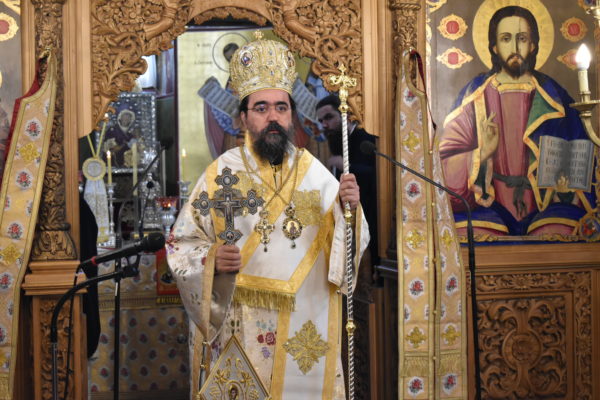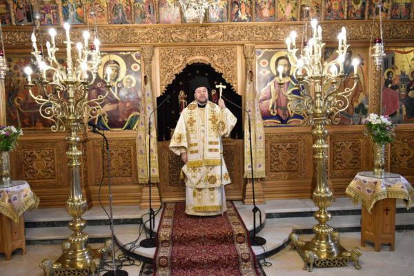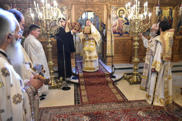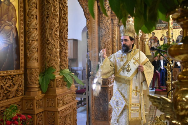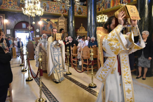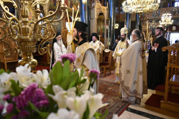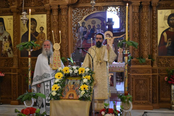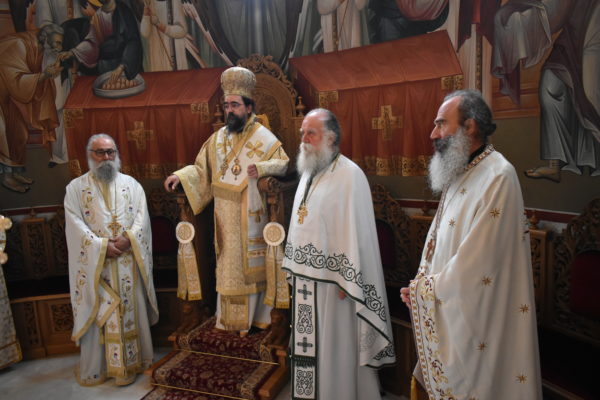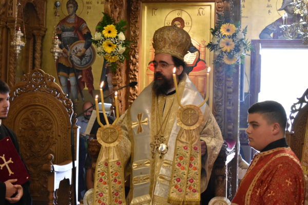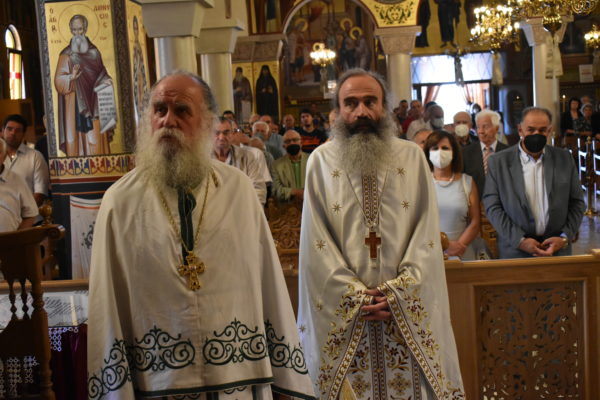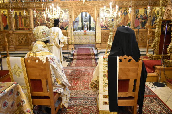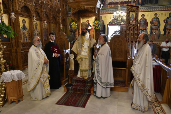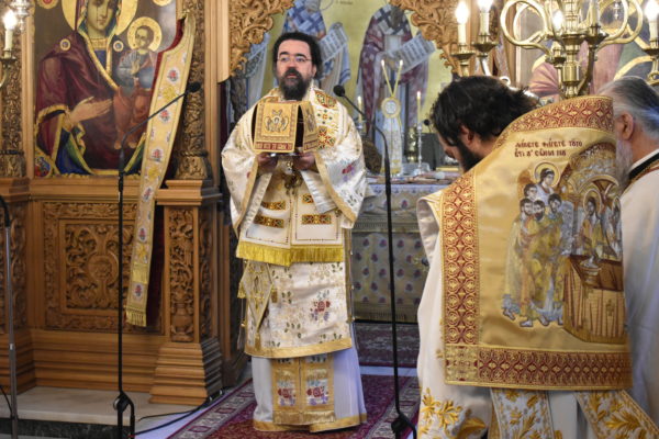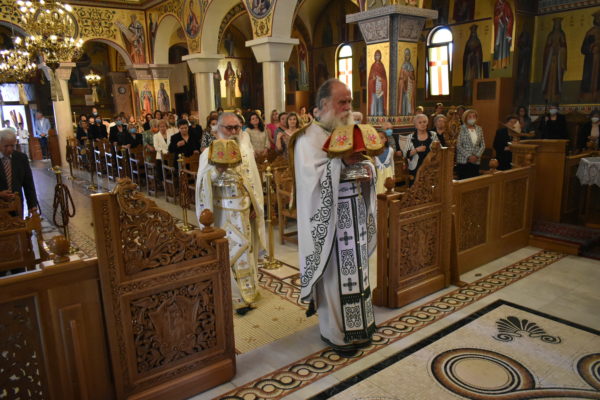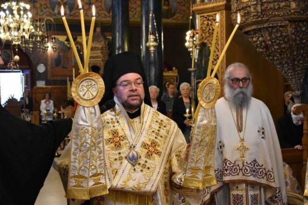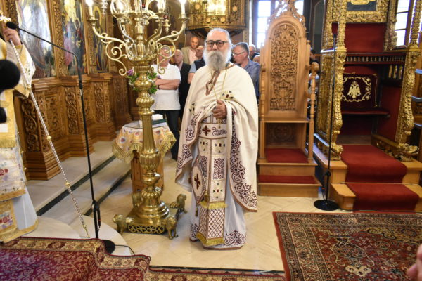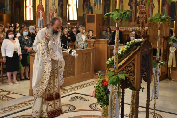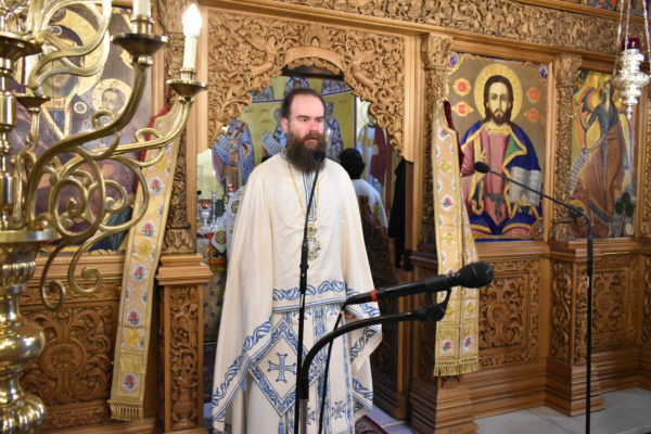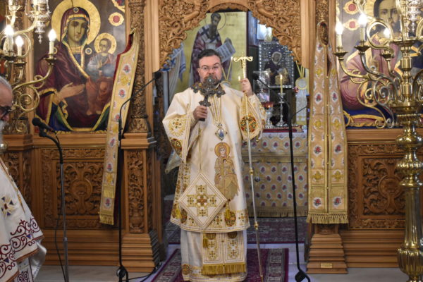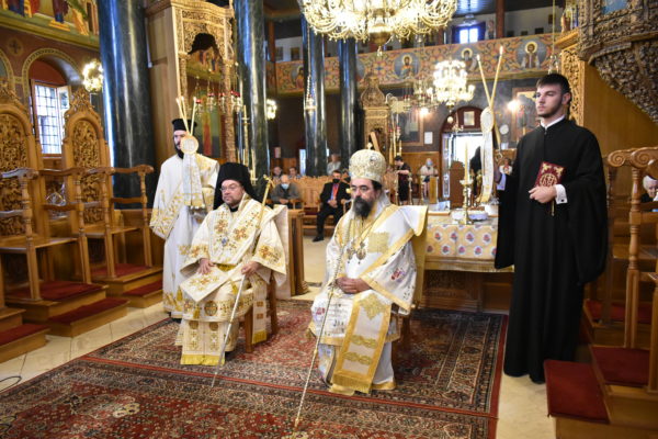 Τον Θεοφιλέστατο Ιεράρχη πλαισίωσαν ο εφημέριος του Ιερού Ναού π. Ελευθέριος Συτιλίδης και ο διάκονος π.Παντελεήμων.