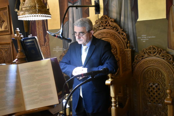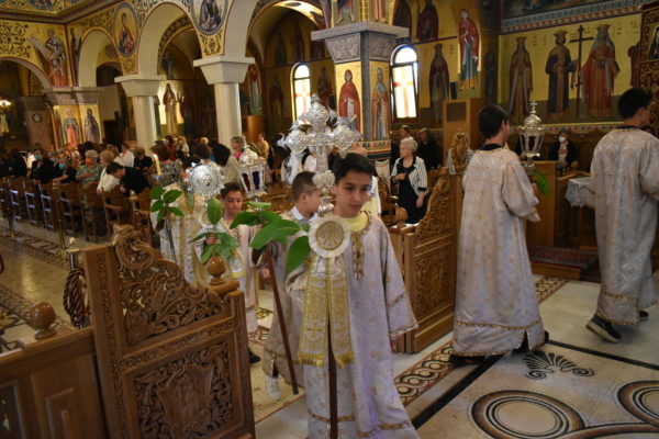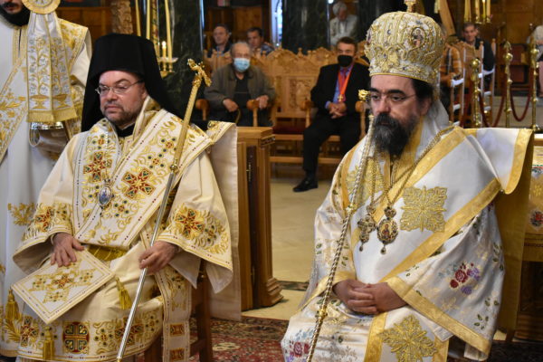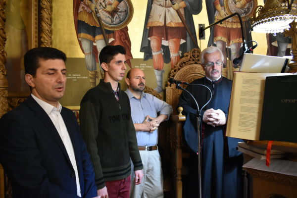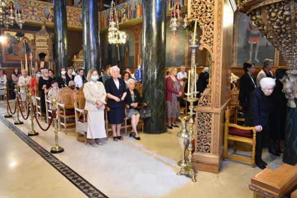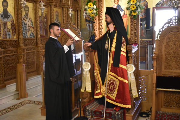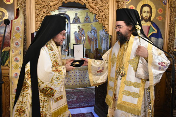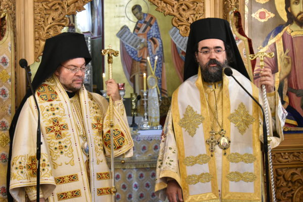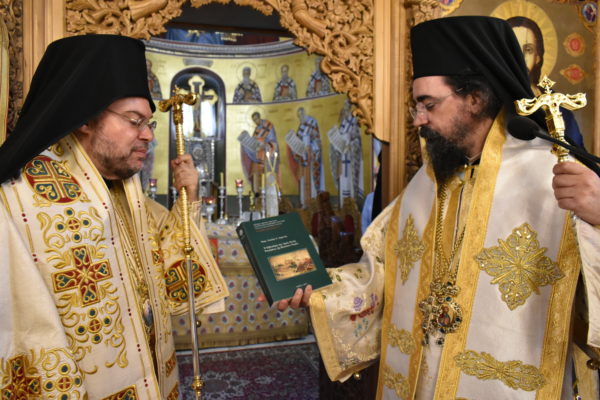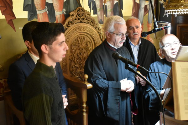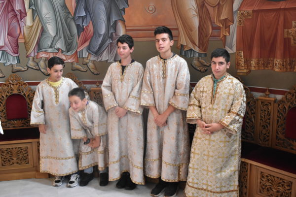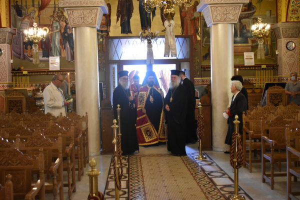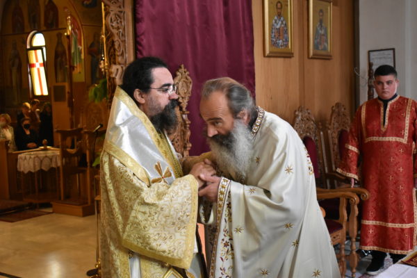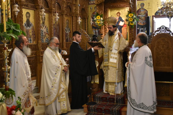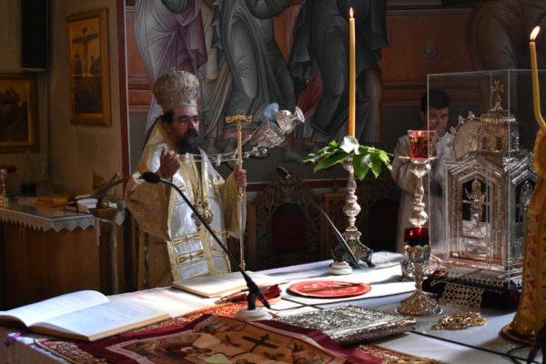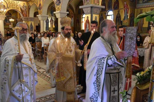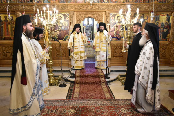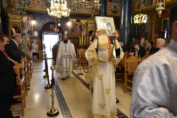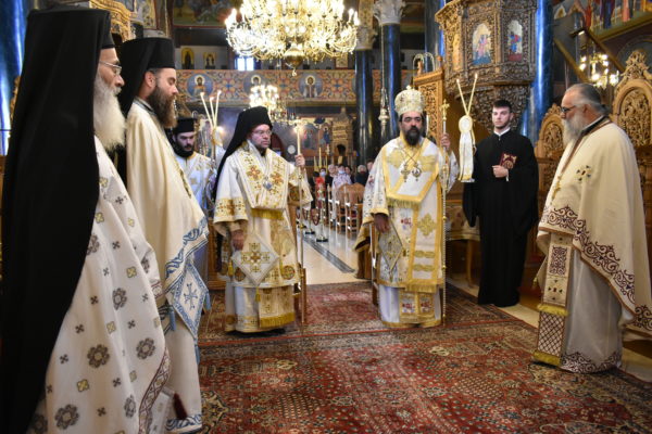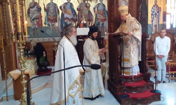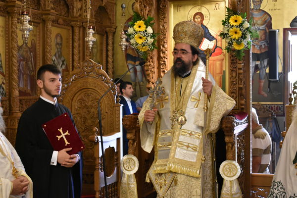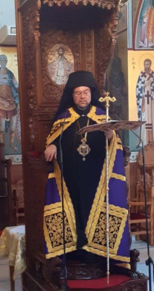 Τον Θεοφιλέστατο Ιεράρχη πλαισίωσαν ο εφημέριος του Ιερού Ναού π. Ελευθέριος Συτιλίδης και ο διάκονος π.Παντελεήμων.