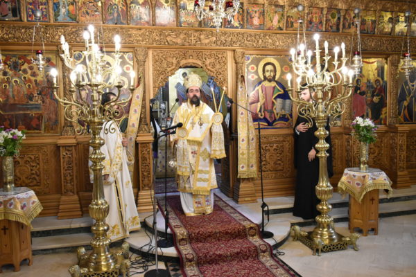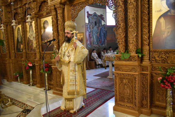 Ο Θεοφιλέστατος κήρυξε τον θείο λόγο, αναφερόμενος στην σημασία την εορτής της Πεντηκοστής και στην έμπνευση του Αγίου Πνεύματος προς τους Αποστόλους και Μαθητές του Χριστού. Μετέφερε τις ευχές του Παναγιωτάτου Οικουμενικού Πατριάρχου κ. Βαρθολομαίου και εξέφρασε την ευγνωμοσύνη του προς το πρόσωπό του. Ευχαρίστησε τον Σεβασμιώτατο κ. Καλλίνικο, τον Σύλλογο των Απολλωνιαδιτών και την πρόεδρο κ. Βασιλική Παπαμαντζάρη και όλους όσοι βοήθησαν στην οργάνωση των εκδηλώσεων.