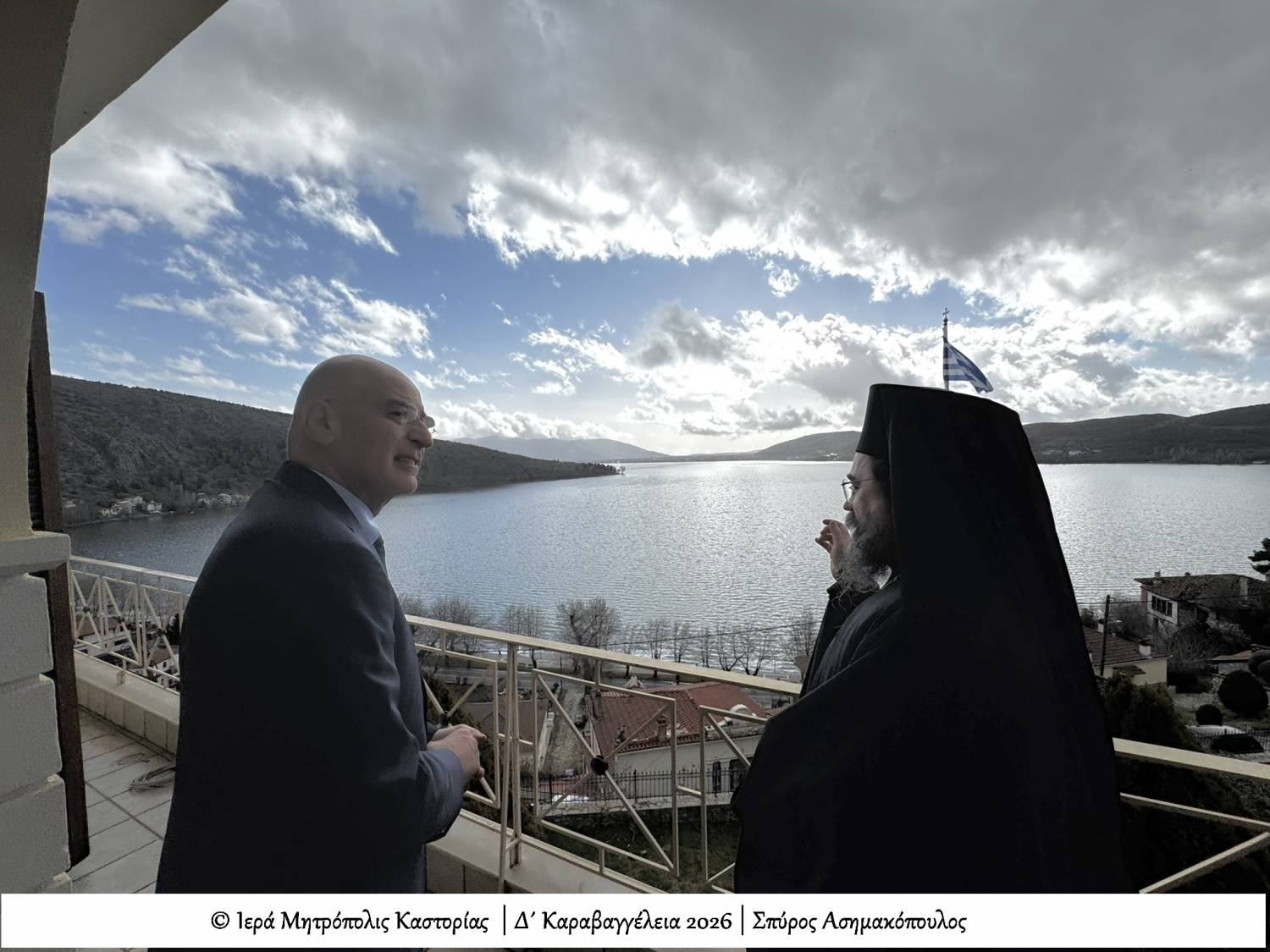 Κατά την παραμονή του, ο Σεβασμιώτατος τον ξενάγησε στους χώρους του Επισκοπείου, στα ιερά Παρεκκλήσια της Θεοτόκου και του Αγίου Καλλινίκου του «Λοκατζή», καθώς και στο μπαλκόνι με την πανοραμική θέα της λίμνης, της παλαιάς πόλεως και των αρχοντικών.