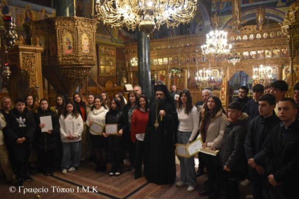 Μετά το πέρας του Εσπερινού ακολούθησε η εκδήλωση βραβέυσεως των μαθητών που διακρίθηκαν στον Λογοτεχνικό Διαγωνισμό.