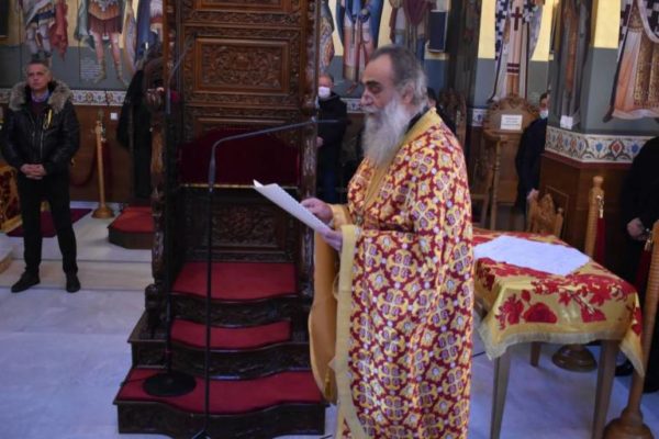Ο Σεβασμιώτατος ευχήθηκε τα δέοντα στον εορτάζοντα π. Ελευθέριο και του προσέφερε ως δείγμα ευαρέσκειας έναν σταυρό που ο ίδιος έφερε ως Αρχιμανδρίτης. Επίσης αναφέρθηκε στον μακαριστό προκάτοχό του κυρό Σεραφείμ και στο έργο που επιτέλεσε γενικώς και ιδιαιτέρως ως προς την ανέγερση και διακόσμηση των Ιερών Ναών.