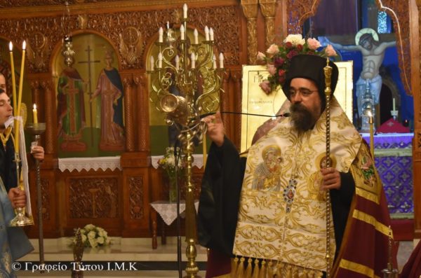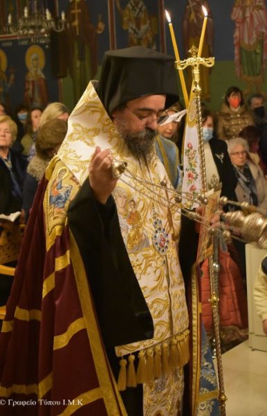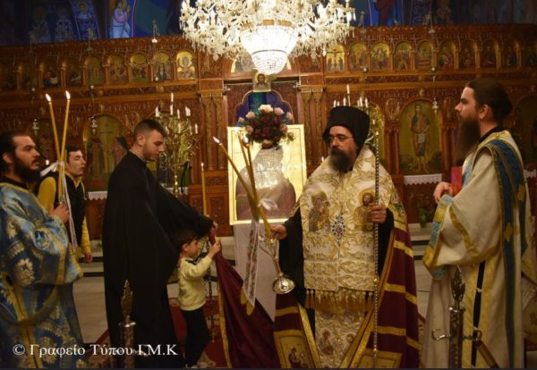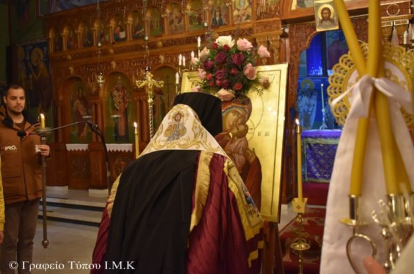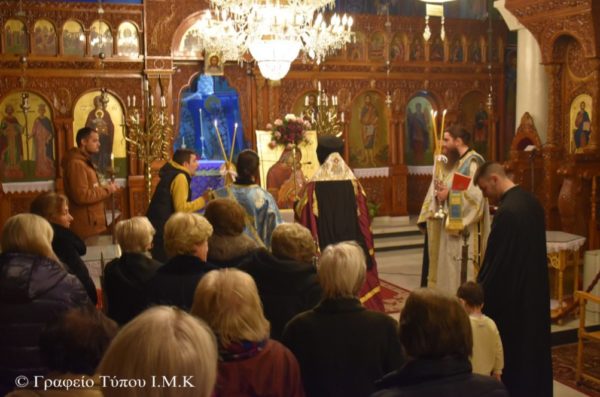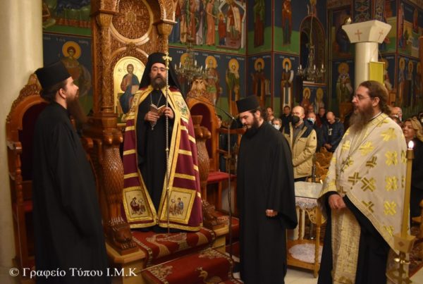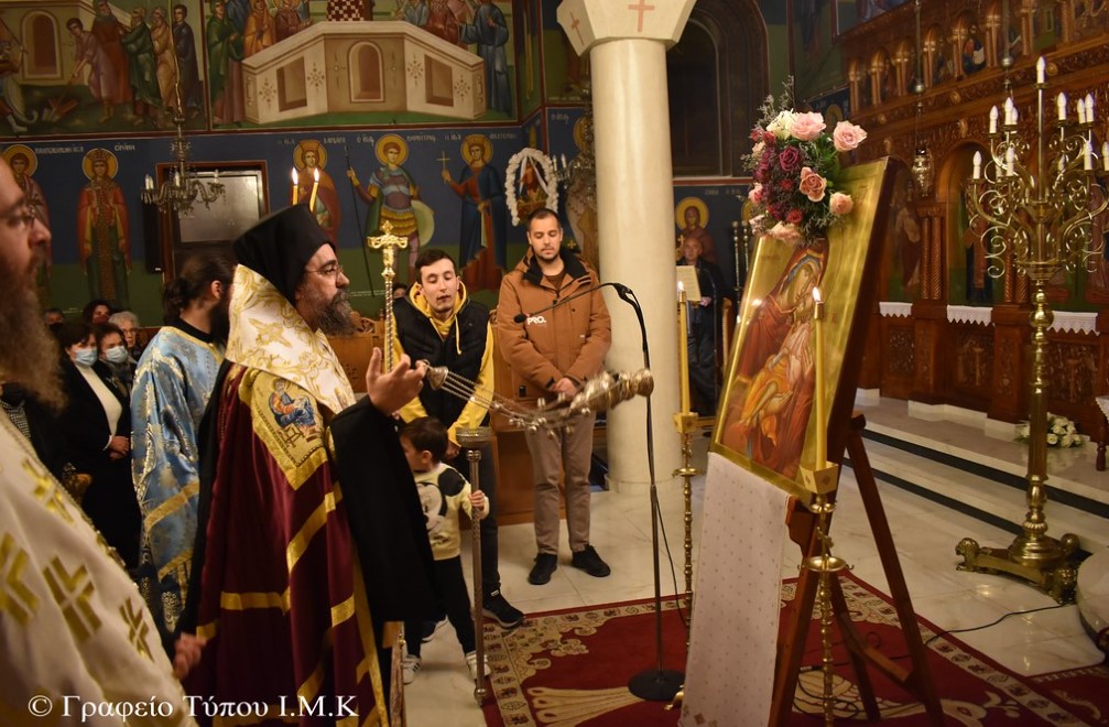 Αφού χοροστάτησε στην ακολουθία του μικρού αποδείπνου και των Χαιρετισμών της Θεοτόκου, ο Σεβασμιώτατος κ. Καλλίνικος έψαλλε τους επόμενους έξι Οίκους προς την Θεοτόκο.