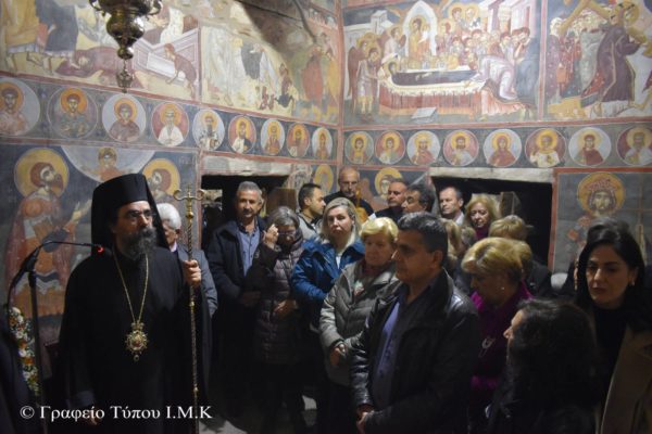 Μετά την απόλυση του Εσπερινού, απηύθυναν χαιρετισμό ο κ. Τζηκαλάγιας και η κ. Σκρέκα, η οποία μαζί με την κ. Γκιμουρτζίνα και τον π. Στέφανο Σχοινά ξενάγησαν τους προσκυνητές στον Ιερό Ναό.