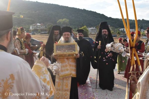 Εν συνεχεία τελέσθηκε ο Πολυαρχιερατικός Εσπερινός μετ’ αρτοκλασίας, χοροστατούντος και ομιλούντος του Σεβ. Μητροπολίτου Δράμας κ. Δωροθέου και συγχοροστατούντων των Σεβ. Μητροπολιτών Πατρών κ. Χρυσοστόμου και Καστορίας κ. Καλλινίκου.