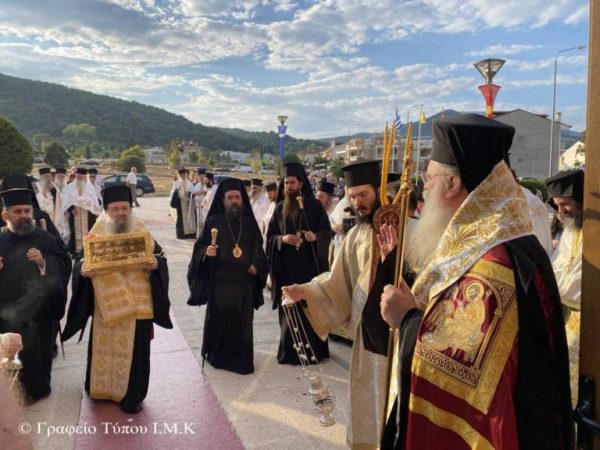 Τα ιερά Λείψανα εκ της Ι.Μ. Πατρών, υποδέχθηκε ο οικείος Ποιμενάρχης κ. Καλλίνικος στην είσοδο της πόλης, το μεσημέρι της Τρίτης 6 Αυγούστου 2024.