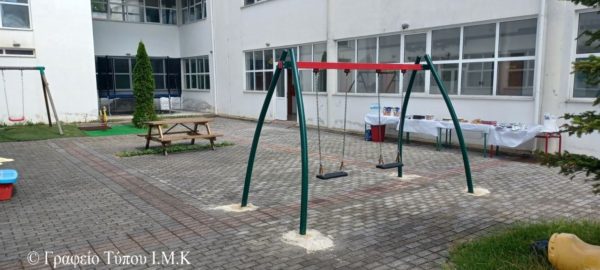 Αναφέρθηκε στο ιστορικό της αγοράς του εξοπλισμού για τις ψυχοκινητικές ανάγκες των μαθητών του Σχολείου, όταν σε επίσκεψή του στο Σχολείο θαύμασε για το ωραίο εσωτερικό αίθριο του Σχολείου, αλλά και παρατήρησε το γεγονός ότι ήταν κενό. Τότε δέχθηκε το αίτημα από τους εκπαιδευτικούς και τους γονείς για την αγορά κατάλληλου εξοπλισμού που χρειαζόταν.