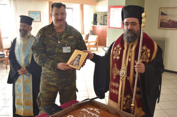 Ο Διοικητής της Μονάδας ευχαρίστησε τον Σεβασμιώτατο και του προσέφερε το σήμα της 3ης ΜΣΕΠ.