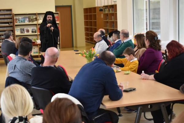 Ο Σεβασμιώτατος μετά την ευλογία της βασιλόπιτας απηύθυνε χαιρετισμό, αναφερόμενος στην σχέση πίστης και επιστήμης κατά την ορθόδοξη παράδοση και κατά την άποψη συγχρόνων μεγάλων επιστημόνων, υποστηρίζοντας ότι αυτά τα δύο δεν συγκρούονται στην παράδοσή μας, όταν λειτουργούν στα πλαίσιά τους.