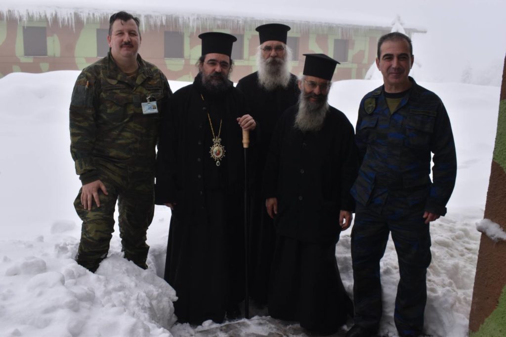 Στην 3η ΜΣΕΠ ο Σεβασμιώτατος μετέβη επί στρατιωτικού οχήματος, λόγω της χιονόπτωσης. Εκεί τον περίμενε ο Διοικητής της Μονάδας κ. Γ. Κωστόπουλος, με τους αξιωματικούς, τους οπλίτες και το βοηθητικό προσωπικό για να τελέσει τον αγιασμό και για να ευλογήσει την βασιλόπιτά τους.