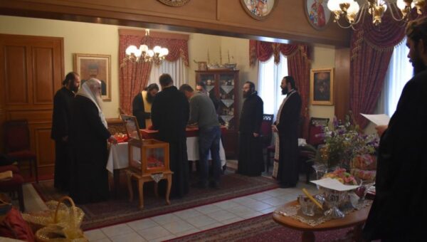 Παρακάτω θέτουμε ορισμένες φωτογραφίες από την ετοιμασία της λάρνακας από τον Σεβασμιώτατο Μητροπολίτη και Ιερείς της Μητροπόλεως, ενώ ταυτόχρονα ψάλθηκε η Παράκληση του Αγίου.