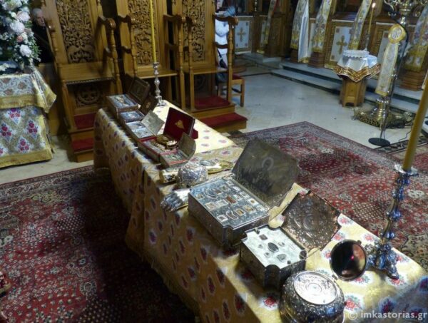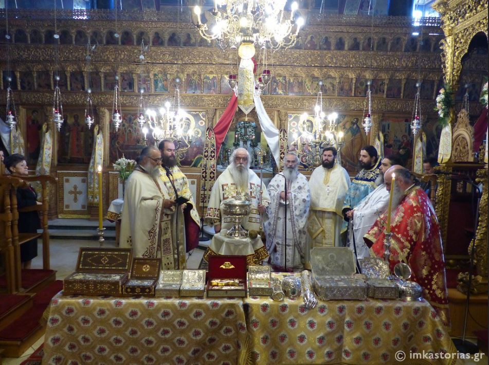 Της Θείας Λειτουργίας προεξήρχε ο Σεβασμιώτατος Μητροπολίτης Καστορίας κ. Σεραφείμ μαζί με πλειάδα Ιερέων της επαρχίας μας. Φέτος, ο καιρός δεν επέτρεψε να πραγματοποιηθεί η καθιερωμένη λιτανεία, έτσι μετά την ευλόγηση των κολλύβων τελέστηκε ο Αγιασμός και οι πιστοί είχαν την ευκαιρία να προσκυνήσουν Ιερά Λείψανα που φυλάσσονται στους Ναούς.