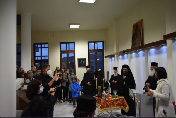Μετά την ακολουθία του αγιασμού, ο υπεύθυνος Νεότητος της Ιεράς Μητροπόλεως Αρχιμ. π. Στέφανος Σχοινάς ευχαρίστησε τον Σεβασμιώτατο για το ενδιαφέρον του για την Νεότητα, η οποία, όπως είπε, πρώτη αποκτά την δική της στέγη. Ευχαρίστησε επίσης τους δύο Ναούς, Κοιμήσεως της Θεοτόκου και Αγίου Γεωργίου, διότι παραχώρησαν το κτίριο στην Ιερά Μητρόπολη προς χρήση.
