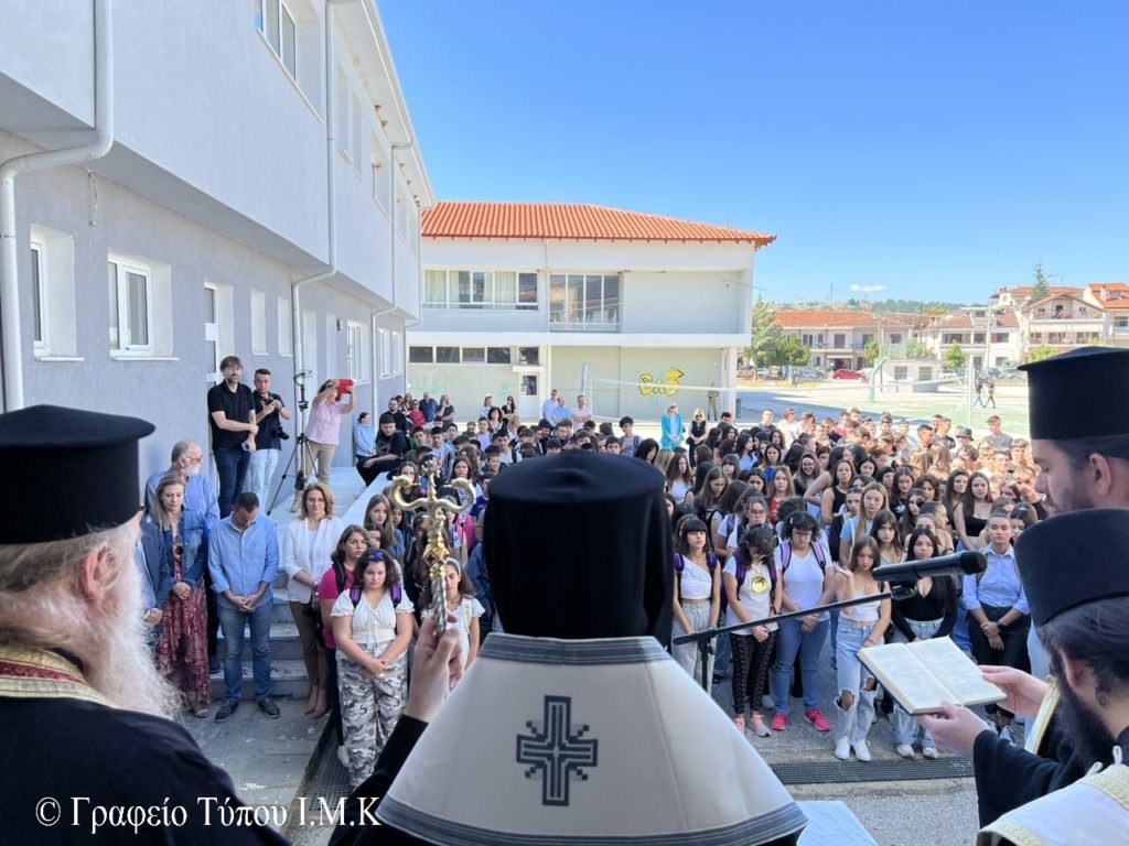 Το απόγευμα ο Σεβασμιώτατος τέλεσε τον αγιασμό στα Εσπερινά Σχολεία, Γυμνάσιο, Λύκειο και Επαγγελματικό Λύκειο.