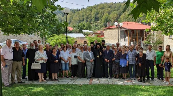 Μετά την θεία Λειτουργία προσεφέρθηκε δεξίωση στην κεντρική πλατεία του ορεινού χωριού, κάτω από τον πλάτανό του, στο θαυμάσιο φυσικό τοπίο. Εκεί συζήτησαν μεταξύ τους σε οικογενειακό κλίμα, ενώ ο Ιεροψάλτης κ. Σωτήριος Γκάκας τραγούδησε παραδοσιακά τραγούδια.