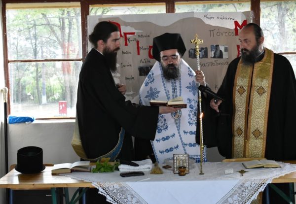Τον αγιασμό τέλεσε ο Σεβασμιώτατος Μητροπολίτης Καστορίας κ. Καλλίνικος, μιλώντας στα παιδιά για το θέμα της Κατασκήνωσης, που είναι αφιερωμένη στην Μικρά Ασία και τα 100 χρόνια από την Μικρασιατική Καταστροφή.