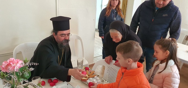 Ο Σεβασμιώτατος είπε ότι εκτιμά πολύ τα ακριτικά και ιστορικά χωριά, ιδιαιτέρως τα Κορέστεια και τον Μελά, όπου βλέπει στα μάτια των παιδιών τους την ζωηράδα και την ευγένεια. Μίλησε στα παιδιά καταλλήλως για την εορτή του Πάσχα, τσούγκρισε μαζί τους το κόκκινο αυγό και τους μοίρασε ευλογίες που είχε φέρει μαζί του.
