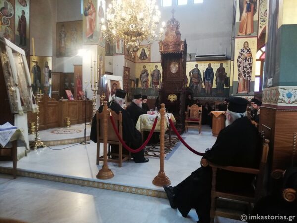 Το πρωί, τελέστηκε Θεία Λειτουργία στον Ιερό Ναό του Αγίου Νικάνορος Καστοριάς από τον Μητροπολίτη Σισανίου και Σιατίστης κ. Αθανάσιο και Ιερείς της Μητροπόλεως. Στη συνέχεια, μετά από ένα σύντομο κέρασμα στην αίθουσα του Ναού, ακολούθησε Ιερατική Σύναξη με ομιλητή τον π. Δανιήλ Αεράκη. Θέμα της συνάξεως ήταν τα χαρίσματα στην Εκκλησία και η αξία της λατρείας κατά τον Απόστολο Παύλο.