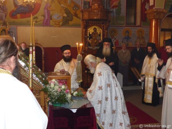 Της Ιεράς Αγρυπνίας προεξήρχε ο Μητροπολίτης Καστορίας Σεραφείμ, συμμετείχαν πολλοί Κληρικοί και πιστοί, ενώ τα χαριτόβρυτα τίμια Λείψανα του Νεομάρτυρος, που πρόσφατα αναγράφθηκε στο Αγιολόγιο της Εκκλησίας, τέθηκαν προς προσκύνηση στο κέντρο του Ναού μαζί την προσφάτως αγιογραφηθείσα εικόνα του.