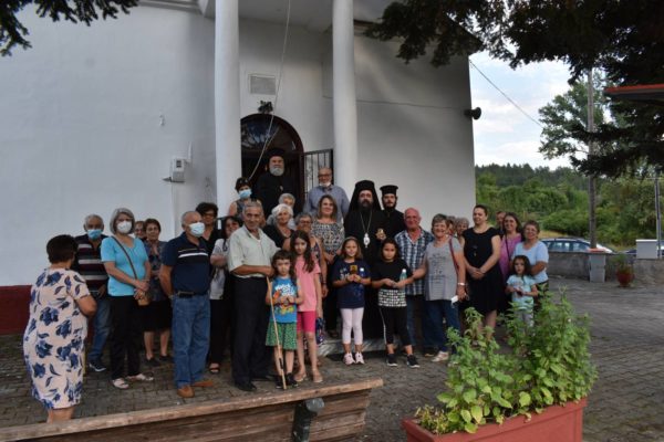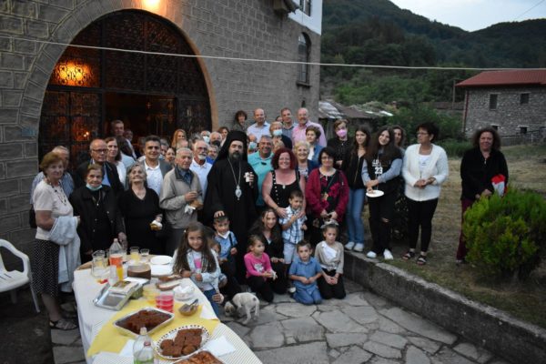 Έξω από τον Ιερό Ναό προσφέρθηκε κέρασμα σε όλους από τις γυναίκες του χωριού, και στην συνέχεια ο Σεβασμιώτατος ξεναγήθηκε στους δρόμους του χωριού από τον κ. Σιώκη και τον πρόεδρο κ. Δημήτριο Θεοχάρη.