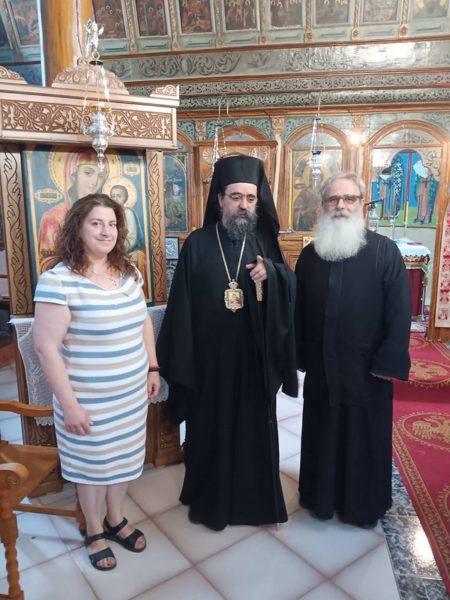 Ο Σεβασμιώτατος ξεναγήθηκε στο Παρεκκλήσι από την κυρία που το φροντίζει και άκουσε για την ιστορία του και την ποιμαντική εργασία που γινόταν με κέντρο τον Ναό αυτό.