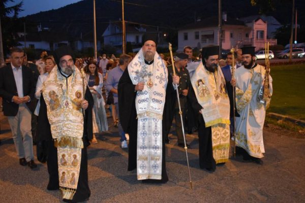 Ακολούθησε ιερά Λιτανεία στους δρόμους της πόλης, στην οποία συμμετείχαν παιδιά παραδοσιακά ενδεδυμένα, οι ιεροψάλτες, στρατιωτικό άγημα, οι Ιερείς που πλαισίωσαν την ιερά εικόνα και έφεραν τα ιερά λείψανα, οι Αρχιερείς με τους διακόνους, οι άρχοντες, με επικεφαλής τον Βουλευτή κ. Ζήση Τζηκαλάγια, τον Περιφερειάρχη Δυτικής Μακεδονίας κ. Γεώργιο Κασαπίδη, τον Αντιδήμαρχο κ. Σωκράτη Πέλκα και εκπρόσωπο του Δημάρχου Καστορίας κ. Γιάννη Κορεντσίδη, την Διευθύντρια του Γραφείου του Πρωθυπουργού στην Θεσσαλονίκη κ. Μαρία Αντωνίου, τον Γενικό Γραμματέα της Περιφέρειας κ. Γρηγόριο Γρηγοριάδη, Δημοτικούς και Περιφερειακούς Συμβούλους, τους επικεφαλής των Στρατιωτικών Αρχών και των Σωμάτων Ασφαλείας της Καστοριάς, κ.ἄ.