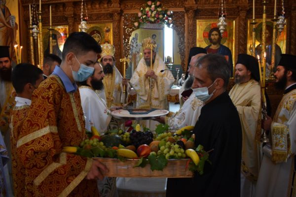 Στο τέλος της θείας Λειτουργίας διαβάσθηκαν τρεις ευχές από τους τρεις Αρχιερείς, για τα κόλυβα του Αγίου, για τους καρπούς της αμπέλου και τέλος για τα νήπια και τα παιδιά.