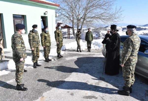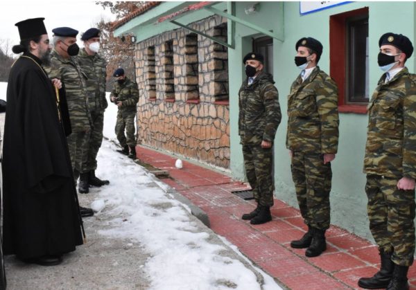Ο Μητροπολίτης Καστορίας κ. Καλλίνικος, συνοδευόμενος από τον Συνταγματάρχη κ. Σμαλιό και τον Διοικητή του 574 Τάγματος Προκαλύψεως Αντισυνταγματάρχη Παύλο Εφαπλωματά, επισκέφθηκε τα Φυλάκια της συνοριακής γραμμής Ελλάδος-Αλβανίας στην Κρυσταλλοπηγή, την Ιεροπηγή και την Διποταμία, το Σάββατο 5 Φεβρουαρίου.