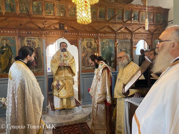 Τελέσθηκε Αρχιερατική θεία Λειτουργία από τον Σεβασμιώτατο κ. Καλλίνικο, συμπαραστατούμενο από τους Ιερείς π. Λεωνίδα Μπάρδο, ο οποίος έλκει την καταγωγή του από το χωριό, τον Εφημέριο π. Πασχάλη Σωτηρόπουλο, και τους διακόνους π. Παύλο και π. Παντελεήμονα.