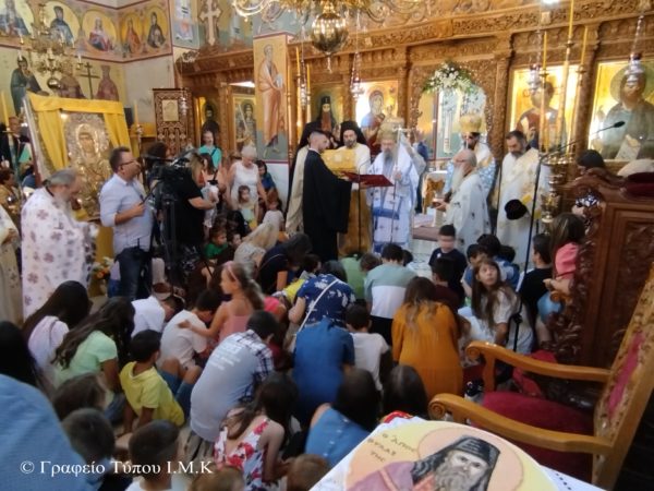 Κατά την ανάγνωση της ευχής από τον Σεβ. Μητροπολίτη Πατρών κ. Χρυσόστομο όλα τα νήπια και τα παιδιά που ήταν στον Ιερό Ναό συγκεντρώθηκαν γονατιστά μπροστά στην Ωραία Πύλη και τα ιερά Λείψανα. Ο Σεβασμιώτατος κ. Χρυσόστομος εξέφρασε την συγκίνησή του για το γεγονός και ευχήθηκε καταλλήλως στους γονείς και τα παιδιά.