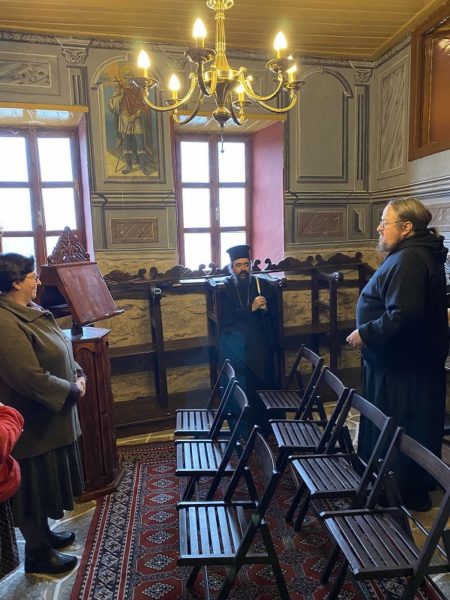 Ο Σεβασμιώτατος συνομίλησε με τους περιπατητές συνοδευόμενος από τους π. Στέφανο και π. Μιχαήλ ενώ επισκέφθηκε και τον Άγιο Νικόλαο Πετρίτη, μεταβυζαντινό ναό του 17ου αιώνος, στον οποίο πρόσφατα ολοκληρώθηκαν οι εργασίες ανακαίνισης με την εποπτεία της αρχαιολογικής υπηρεσίας και χρηματοδότηση ιδιώτη.